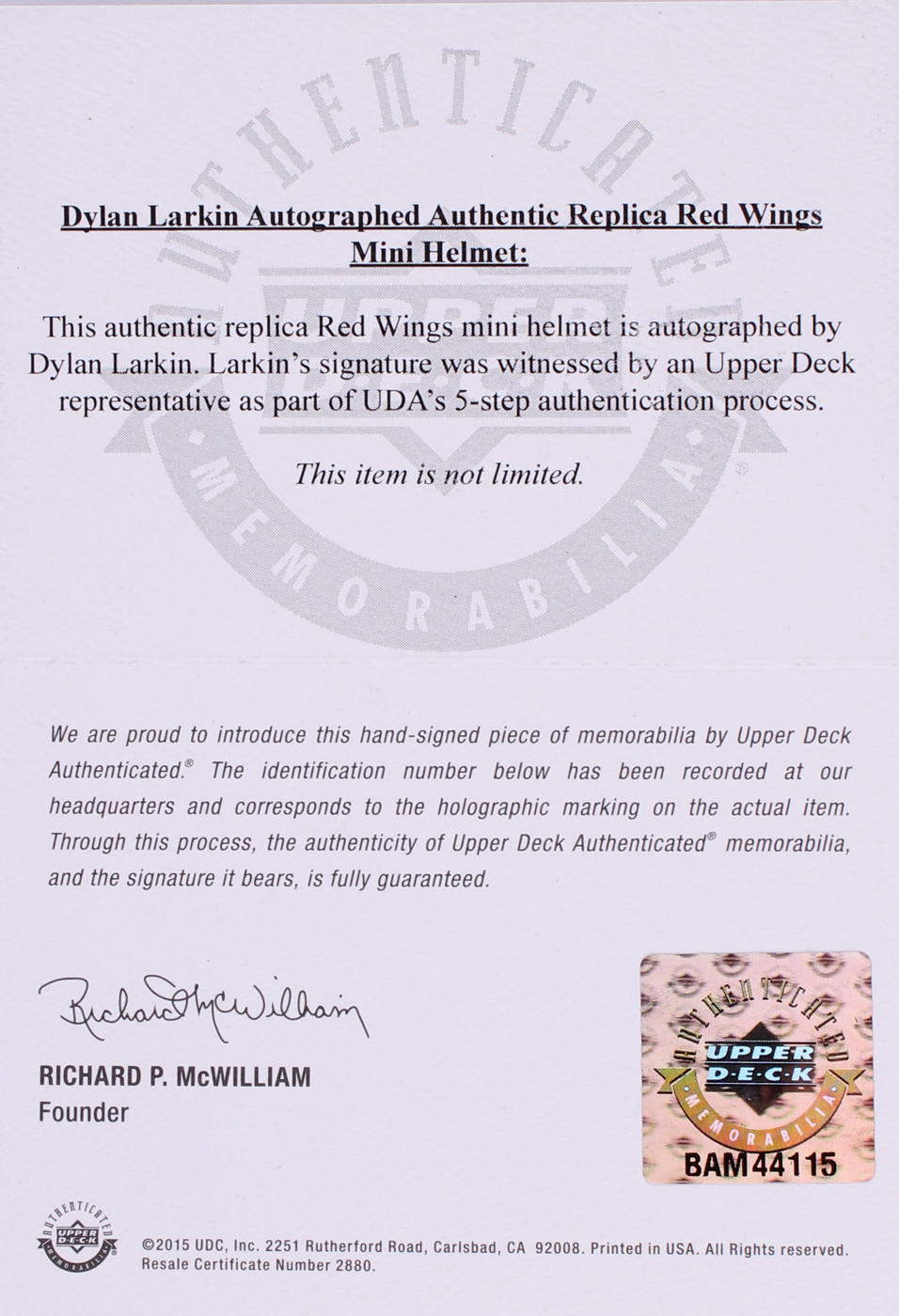 Dylan Larkin Signed Red Wings Mini Helmet (UDA COA)