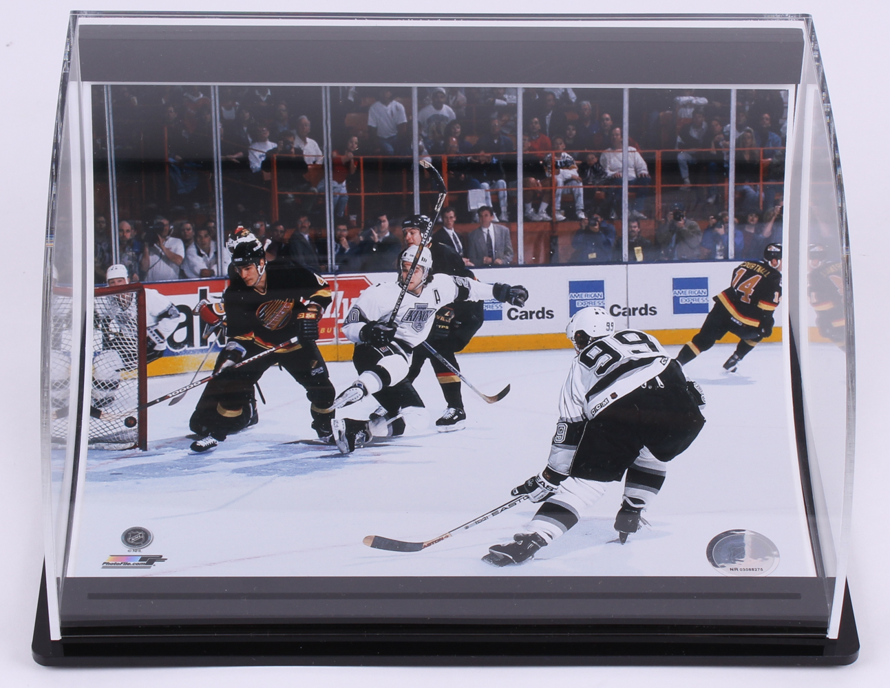 Wayne Gretzky Signed LE Oilers Hockey Puck with Custom Curve Display (UDA COA)
