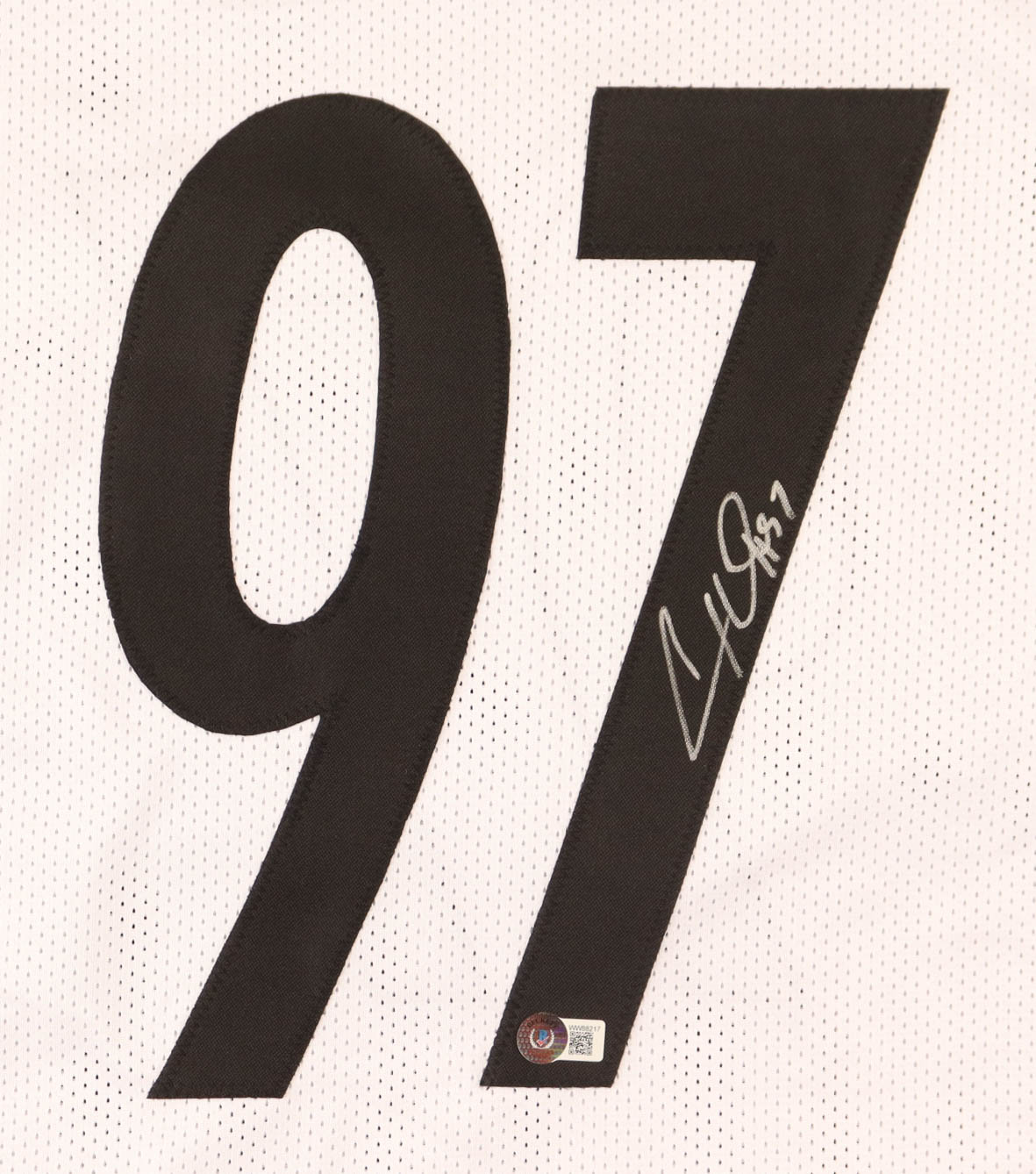 Custom on-field style jersey. Everything is sewn on, size XL. Hand-signed by Cameron Heyward.