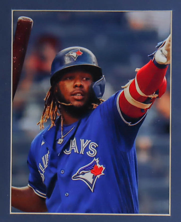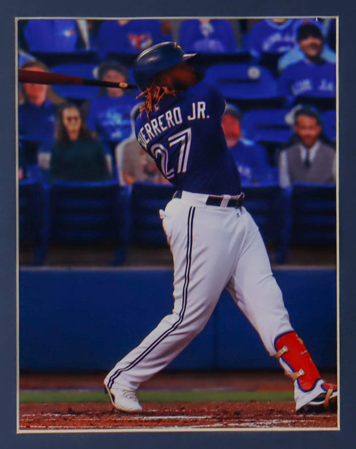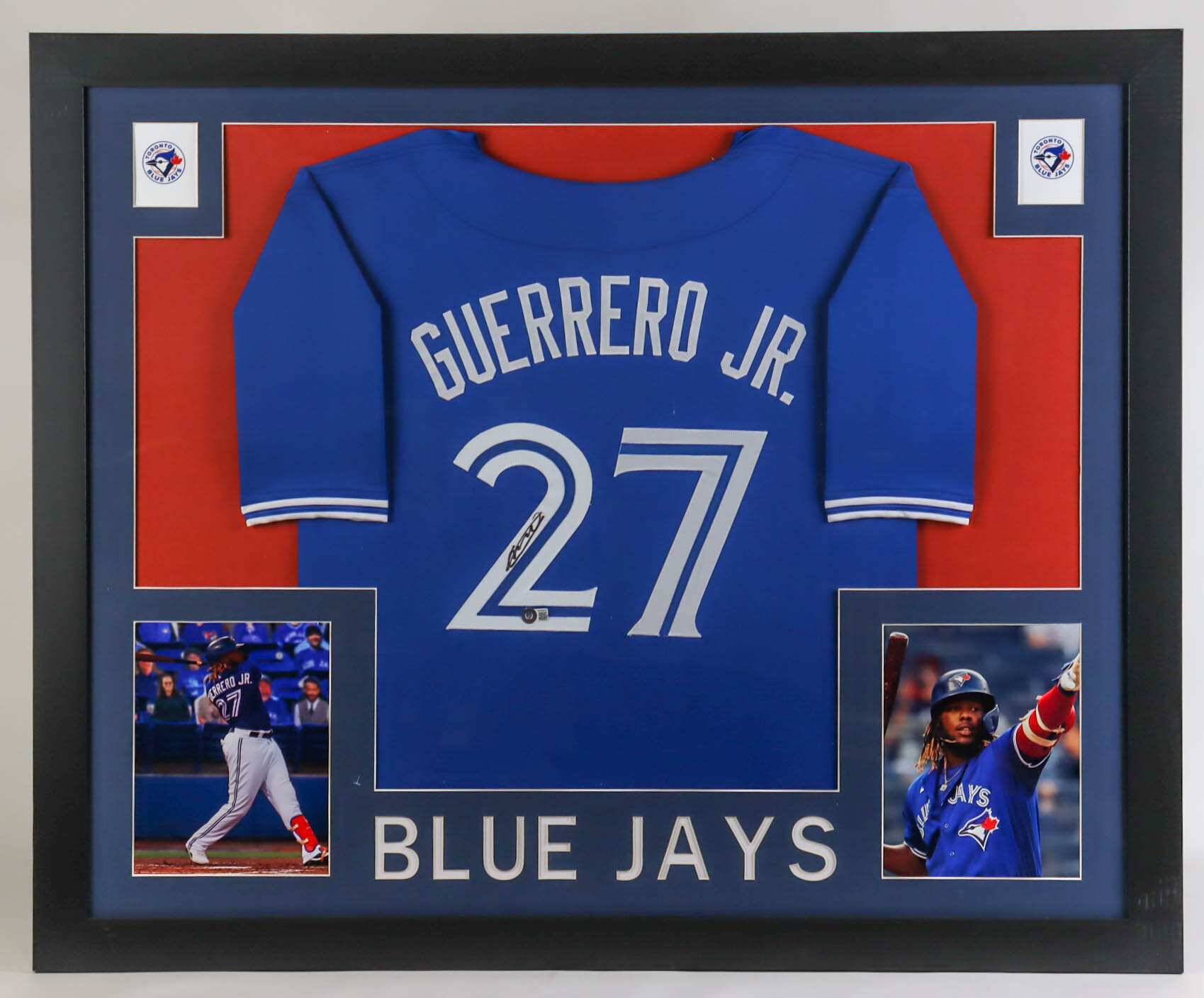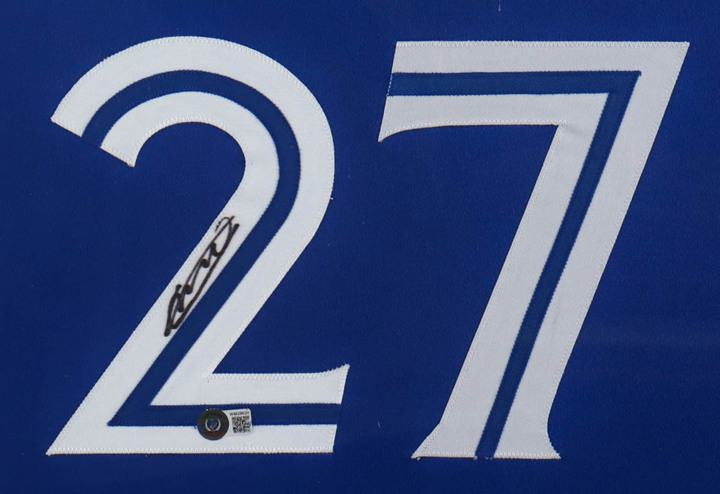 Custom frame measures 35.5" x 43.5" in size and features a jersey hand-signed by Vladimir Guerrero Jr.