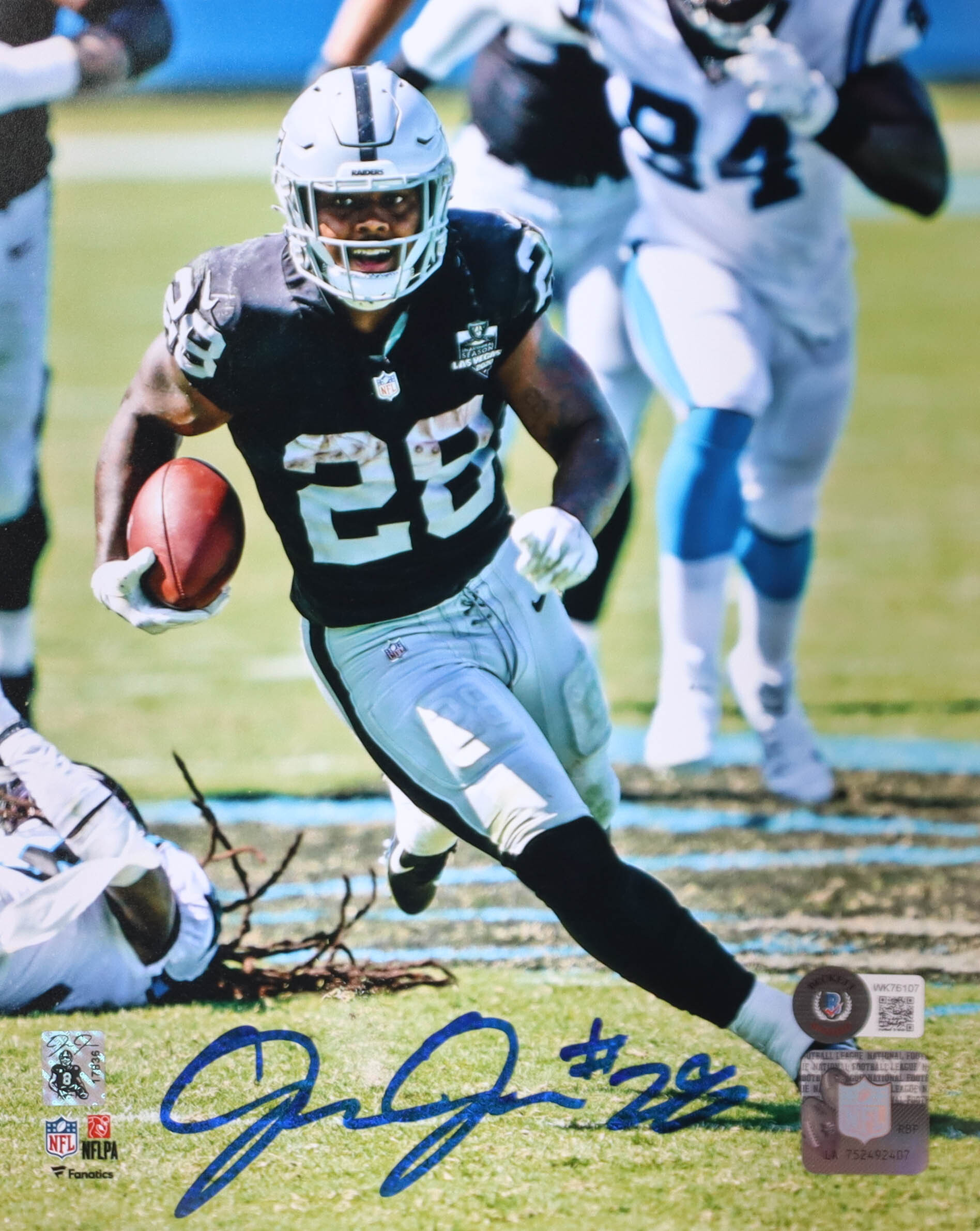 Photo measures 8" x 10" in size and has been hand-signed by Josh Jacobs (Las Vegas Raiders).