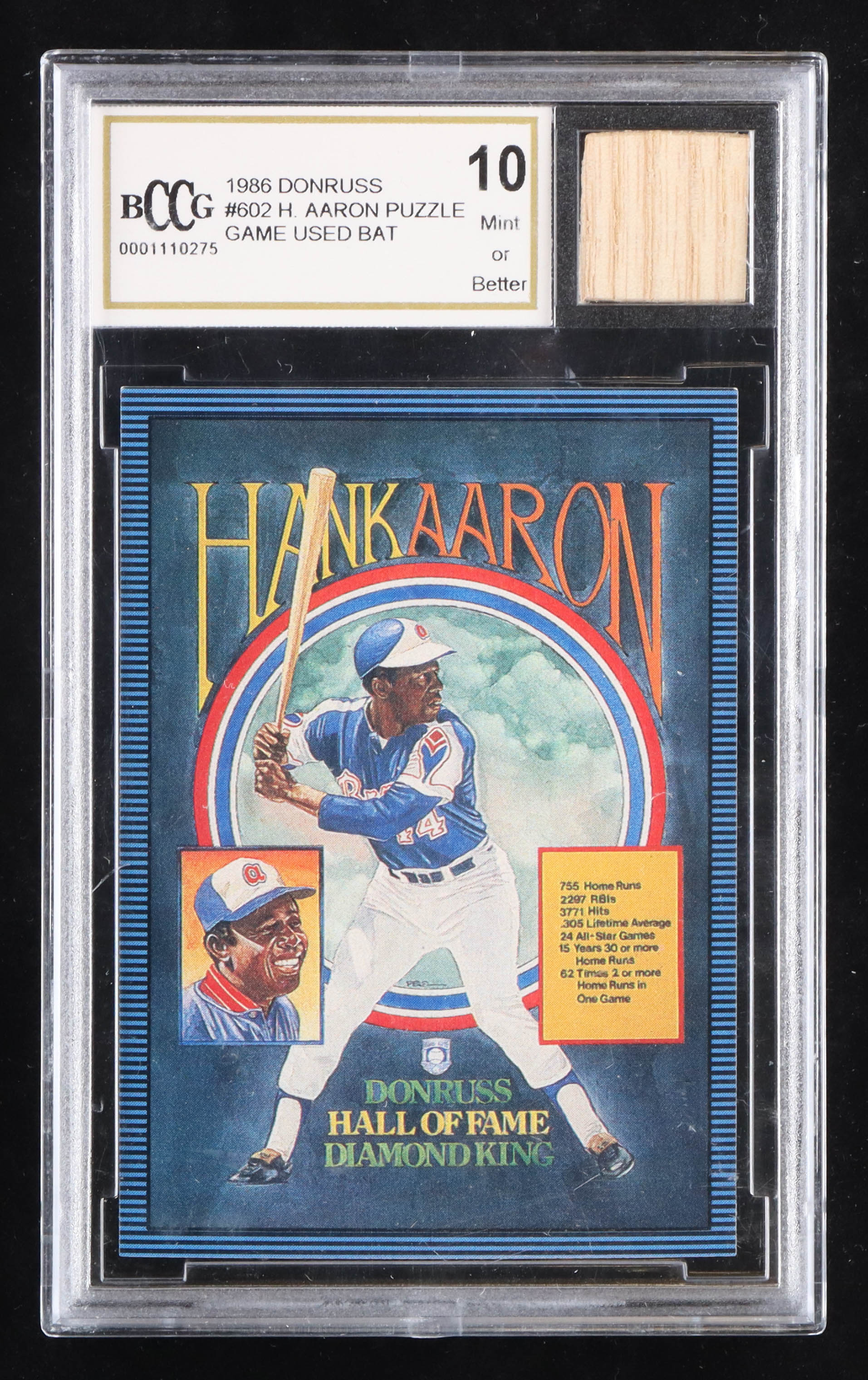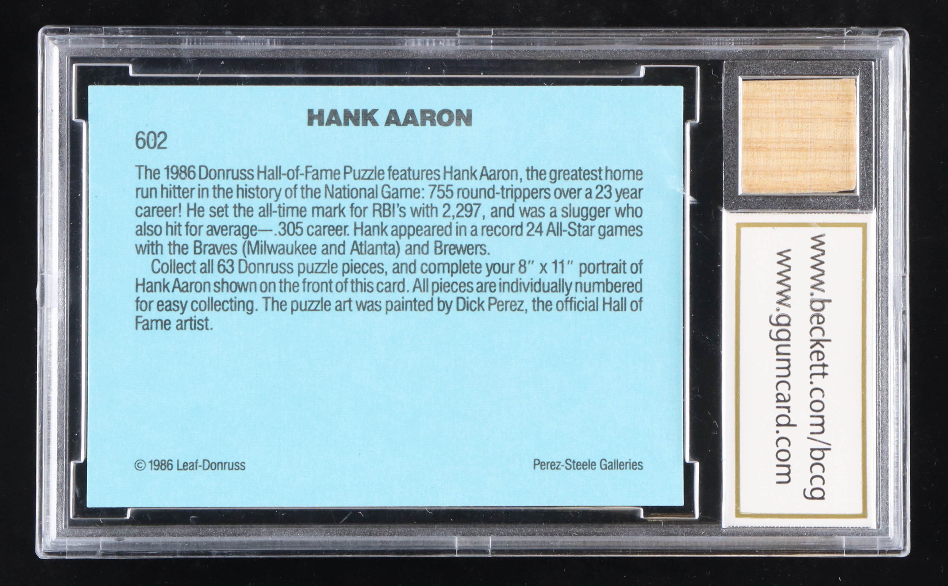 Hank Aaron 1986 Donruss Puzzle #602 With Game Used Bat Piece (BCCG 10)