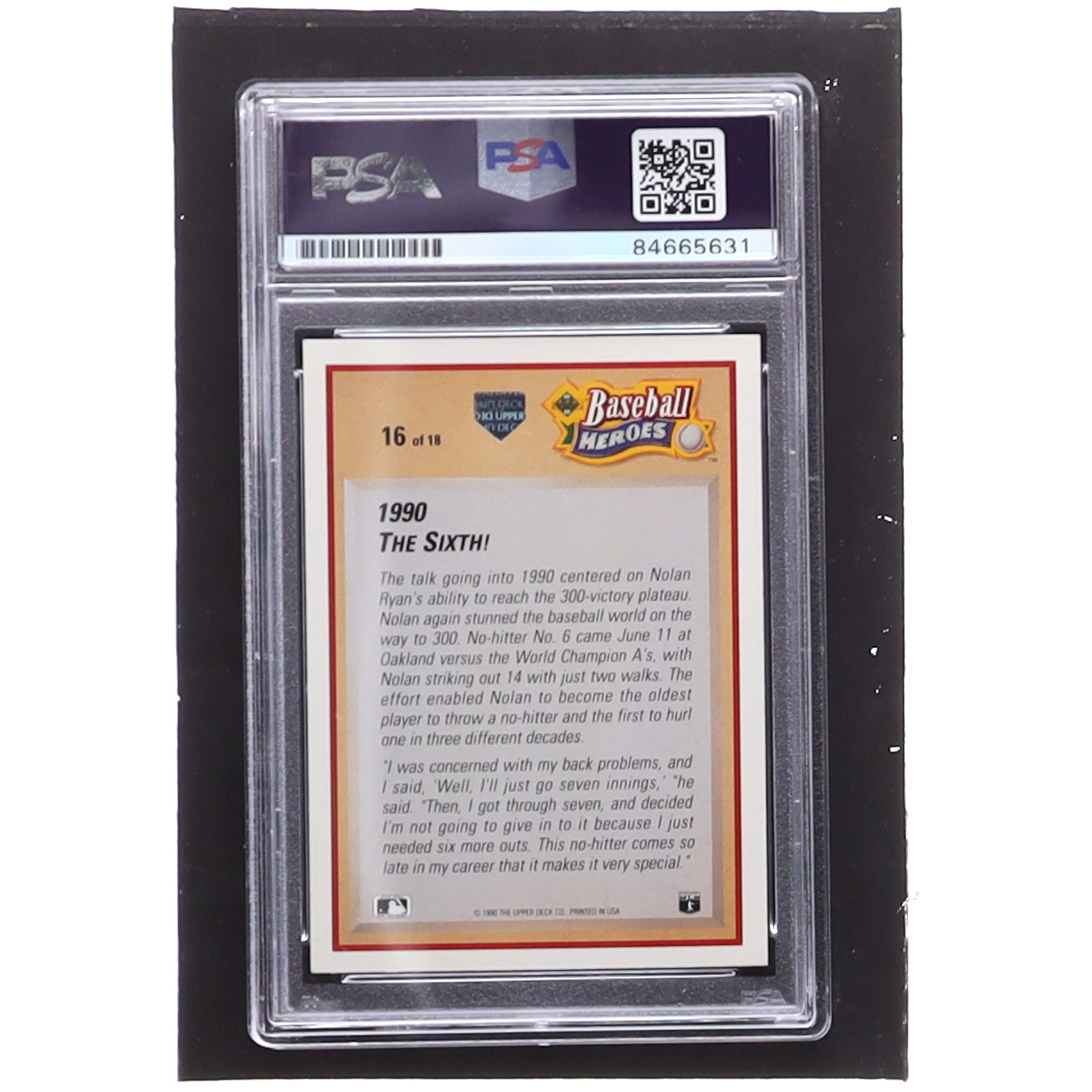 Nolan Ryan Signed 1991 Upper Deck Ryan Heroes #16 (PSA)