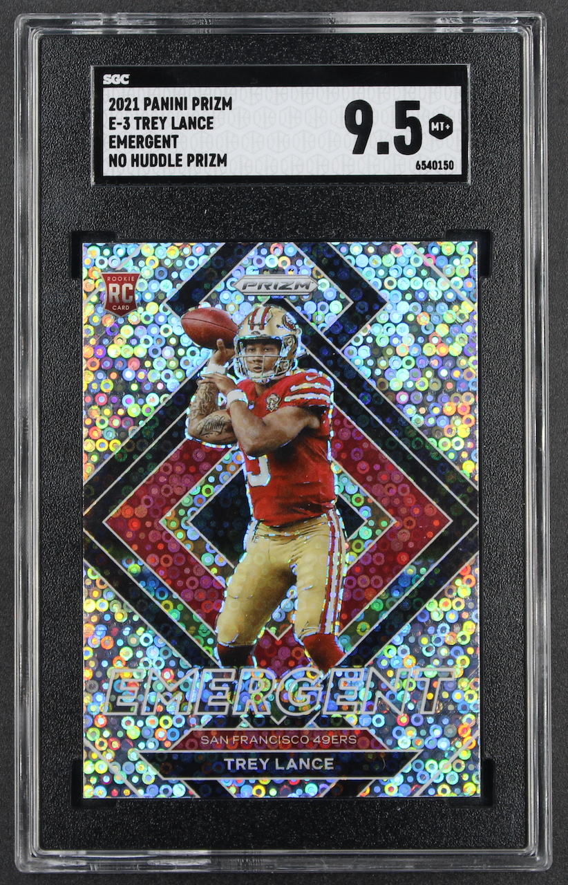 Trey Lance 2021 Panini Prizm Emergent Prizms No Huddle #3 RC (SGC 9.5)