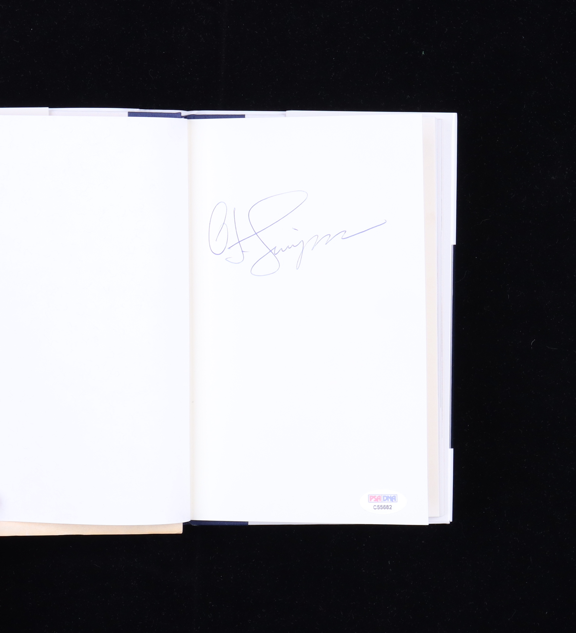 Hardcover book has been hand-signed on the inside cover page by O. J. Simpson (Buffalo Bills, HOF).