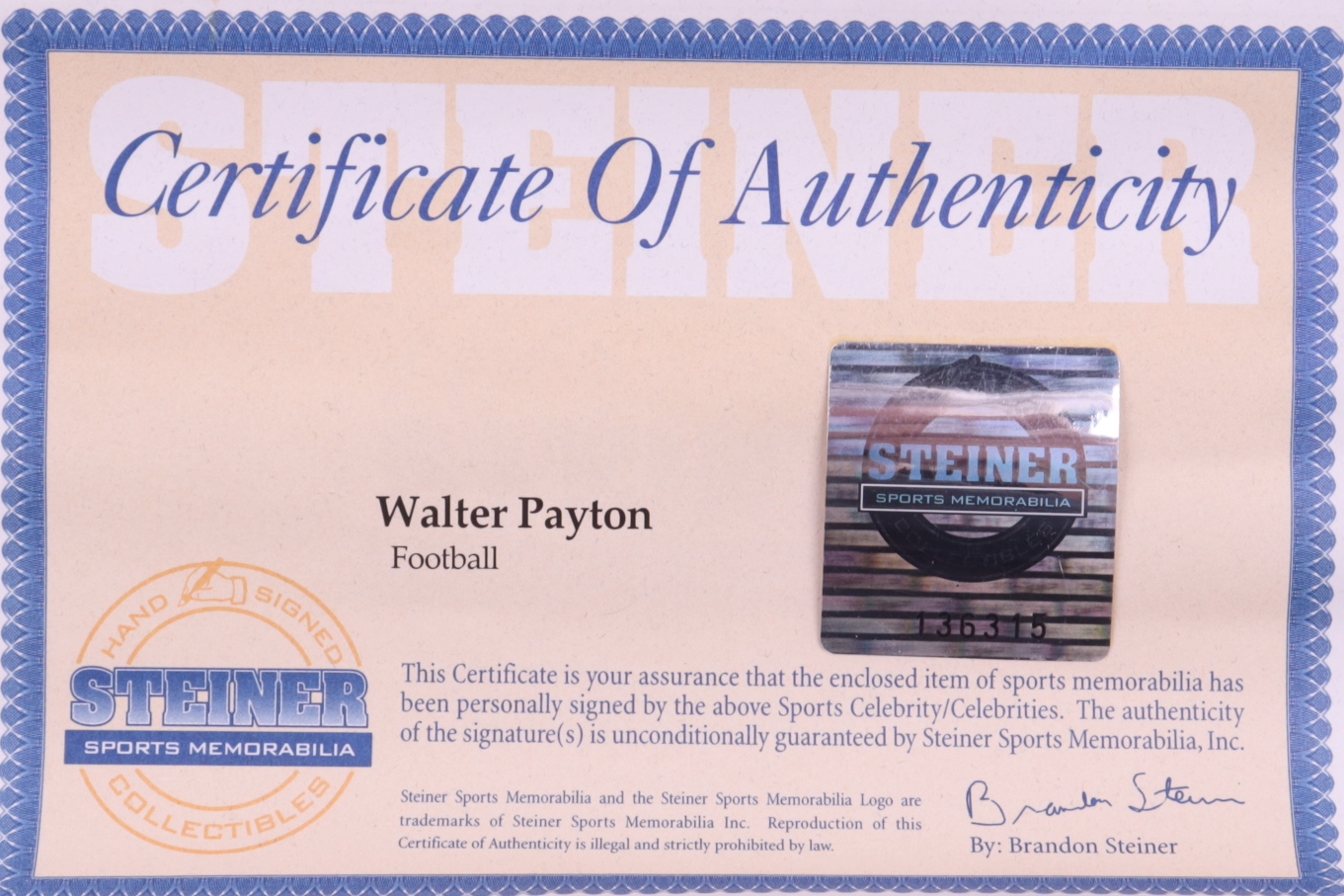 The lot / autograph(s) includes an official Steiner Sports hologram and matching COA for authenticity purposes.