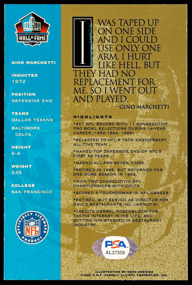 Gino Marchetti Signed Hall of Fame Signature Series Card Inscribed "HOF 72" (PSA)