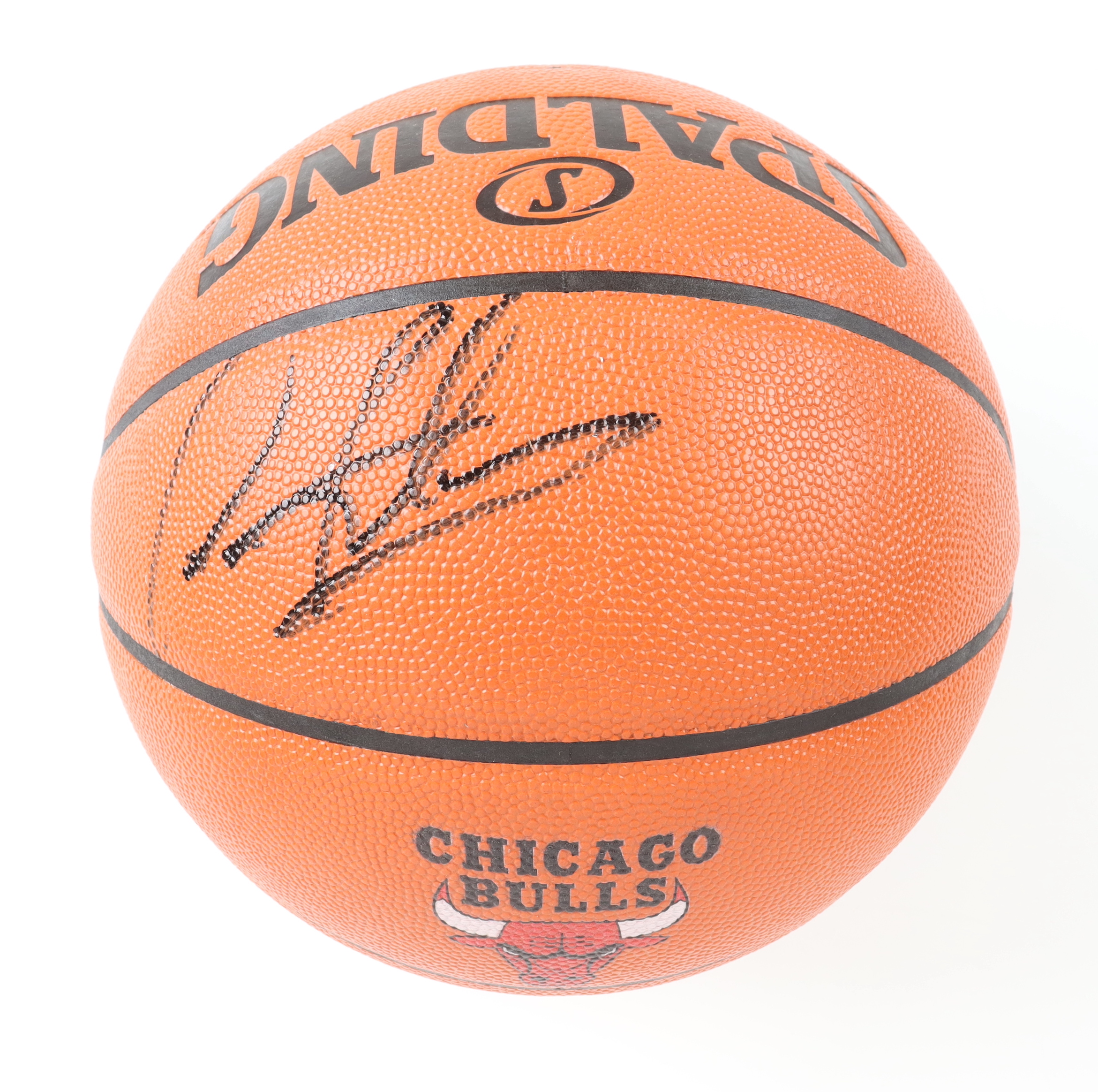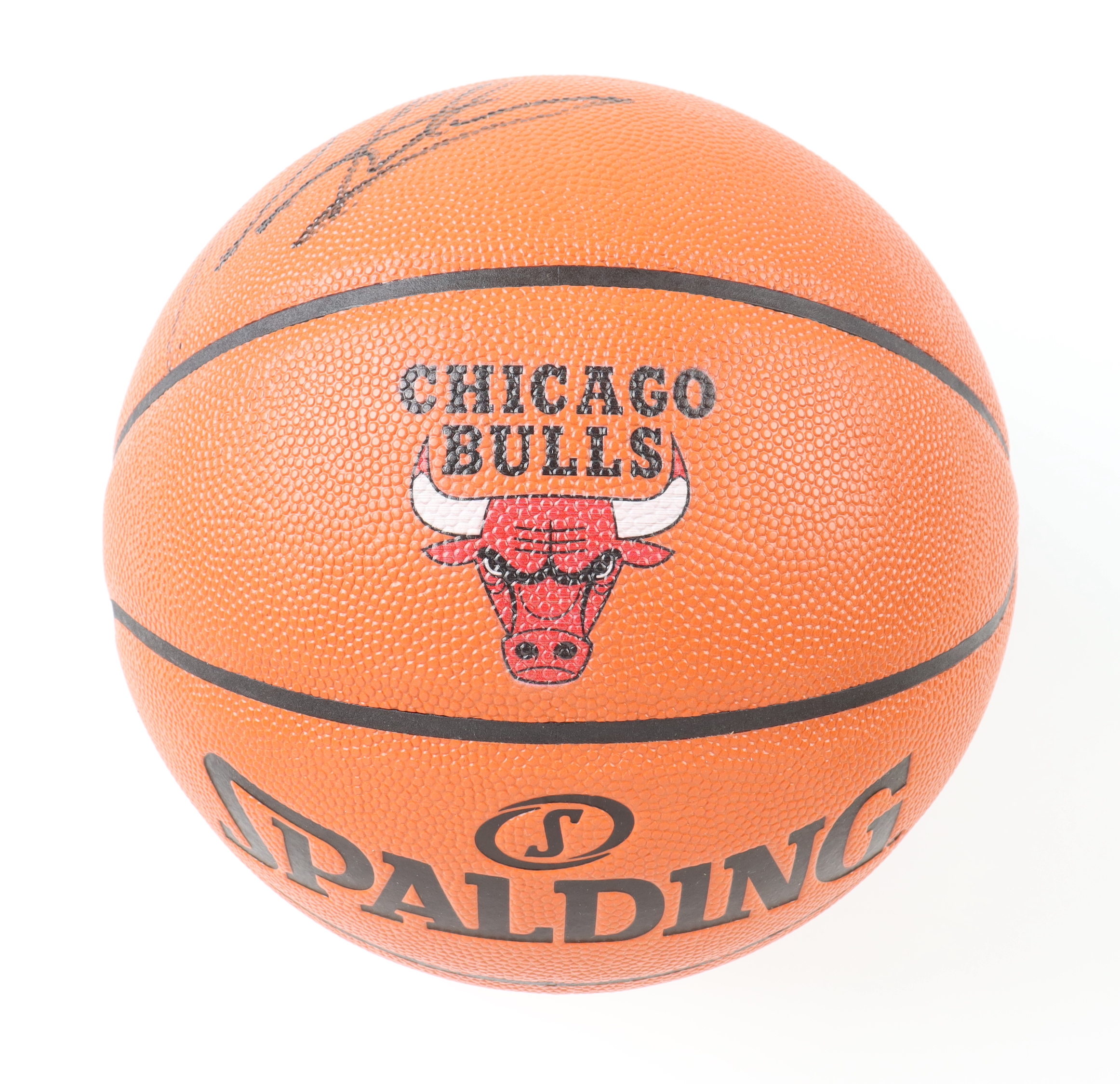 Spalding Chicago Bulls logo Game Series replica NBA basketball. Hand-signed by Dennis Rodman (HOF).