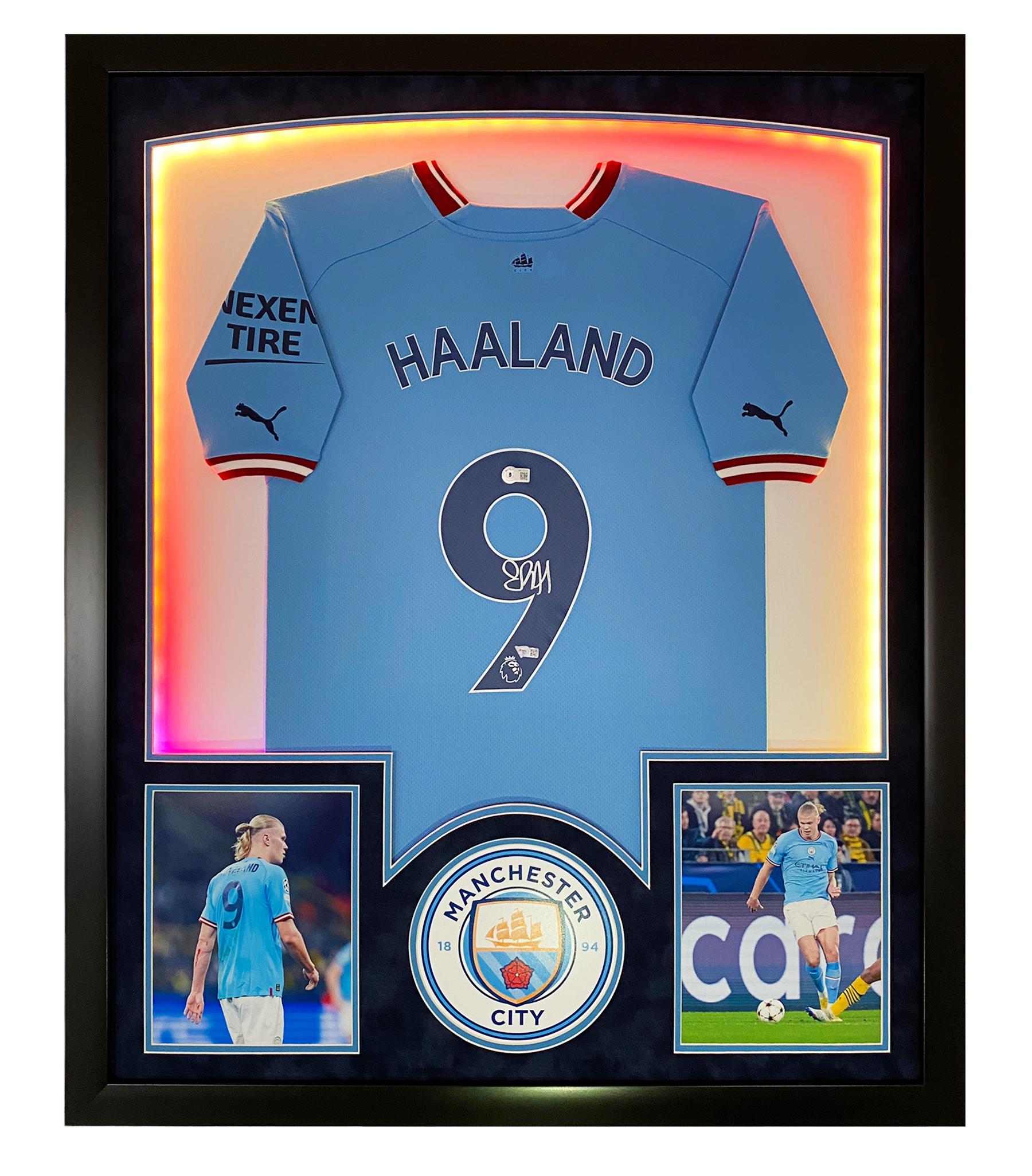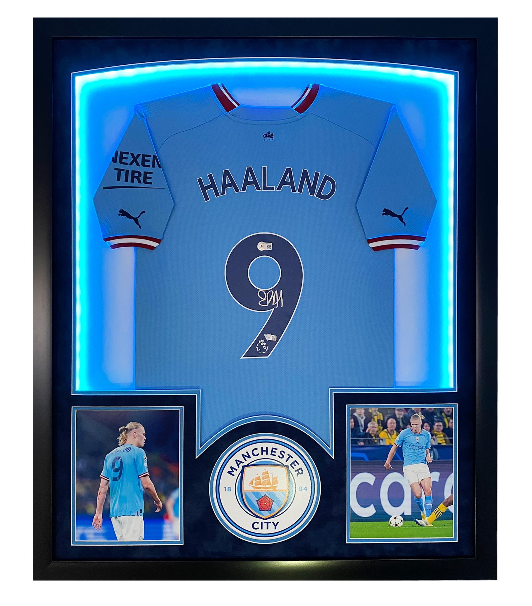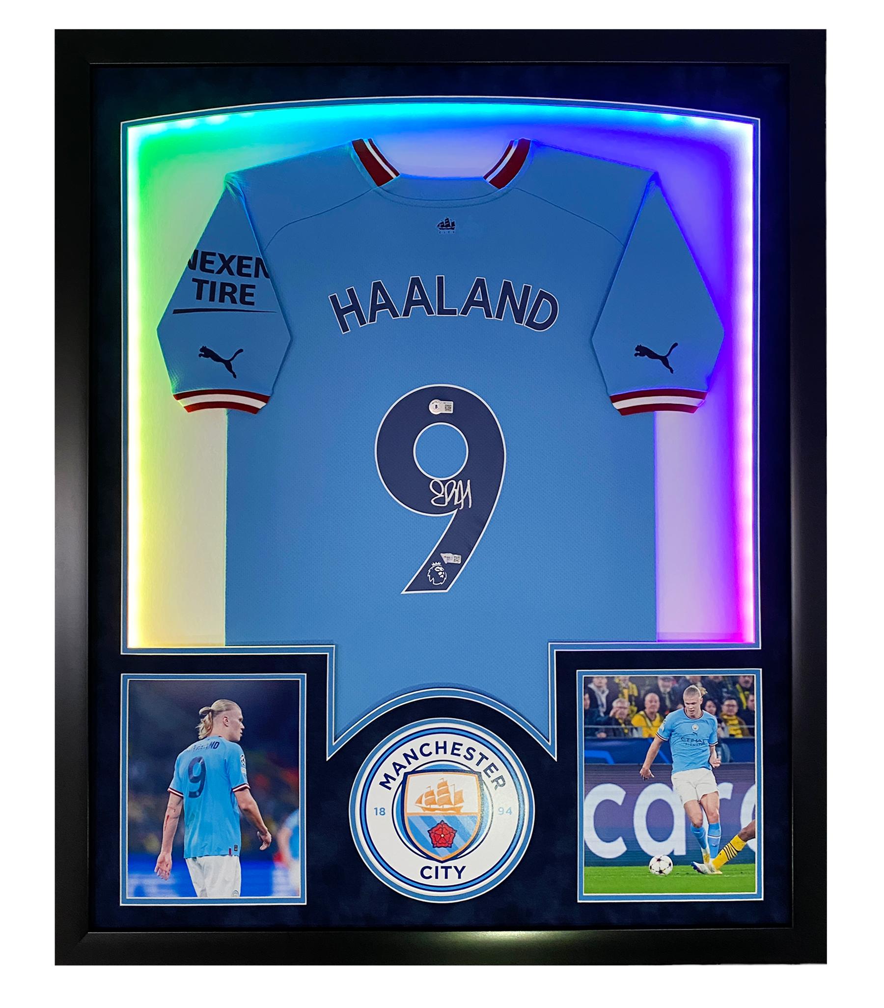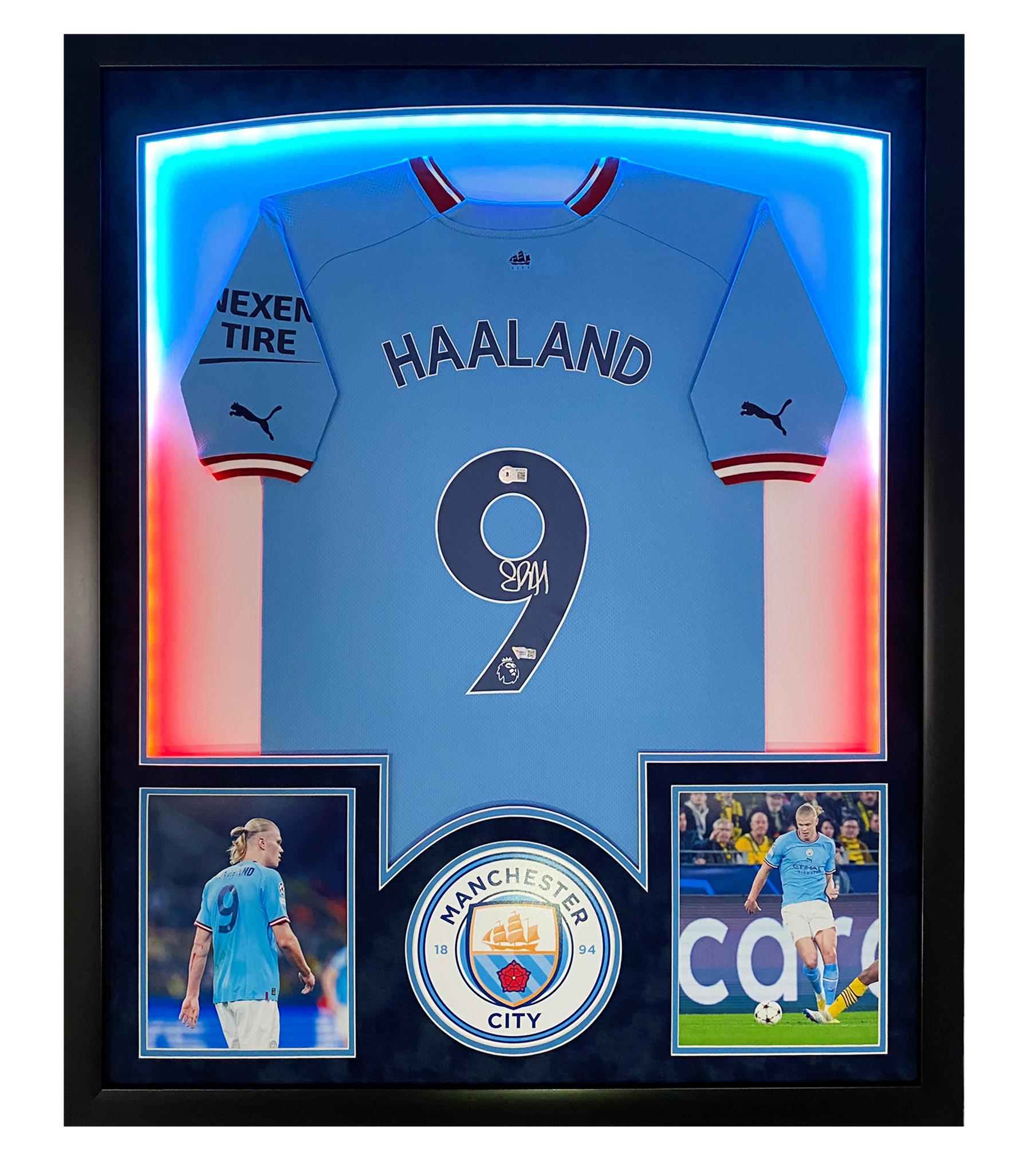 Erling Haaland Signed Manchester Custom Framed LED-Backlit Jersey Display (Fanatics)