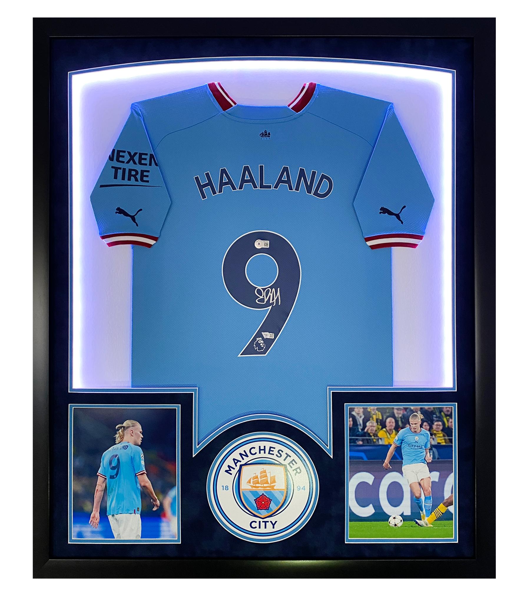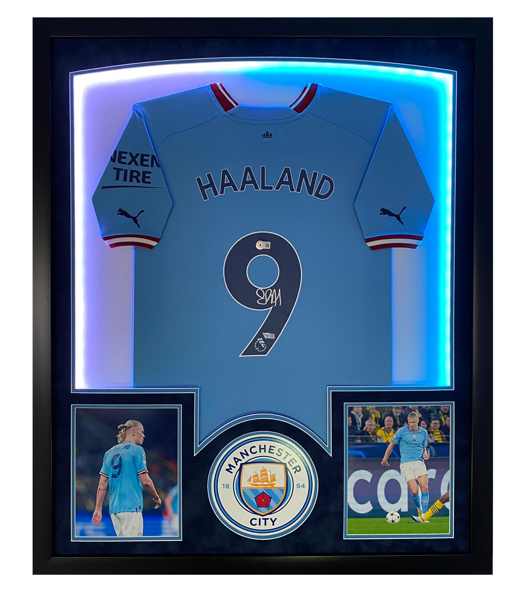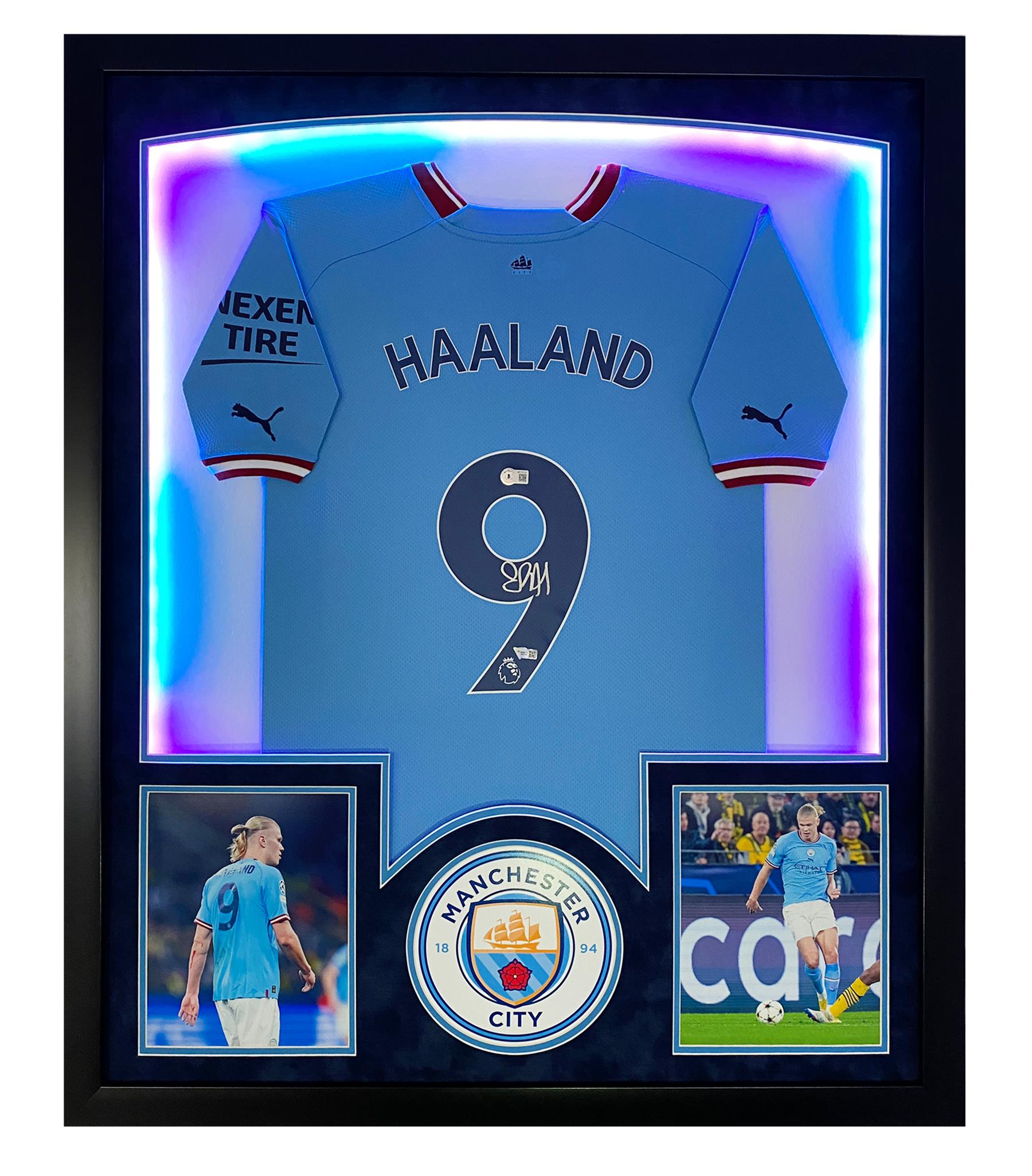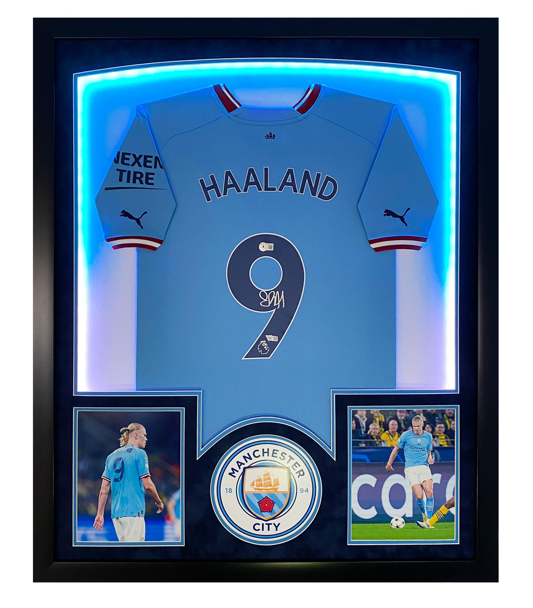 Erling Haaland Signed Manchester Custom Framed LED-Backlit Jersey Display (Fanatics)