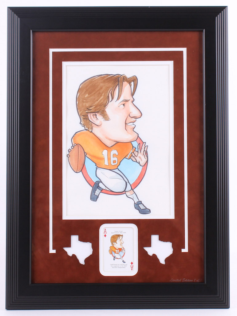 James Street Texas Longhorns LE 17x23 Custom Framed Caricature Display with Unopened Hero Deck Playing Cards