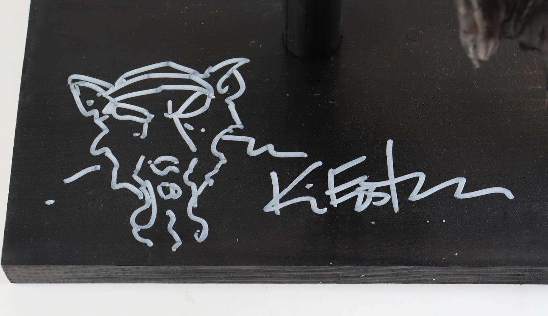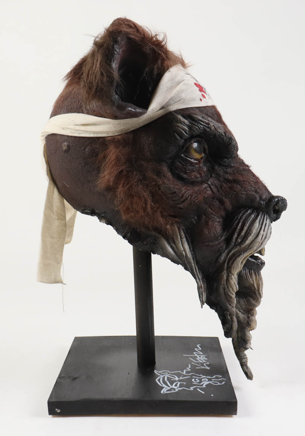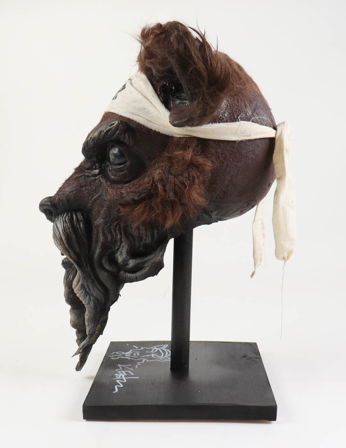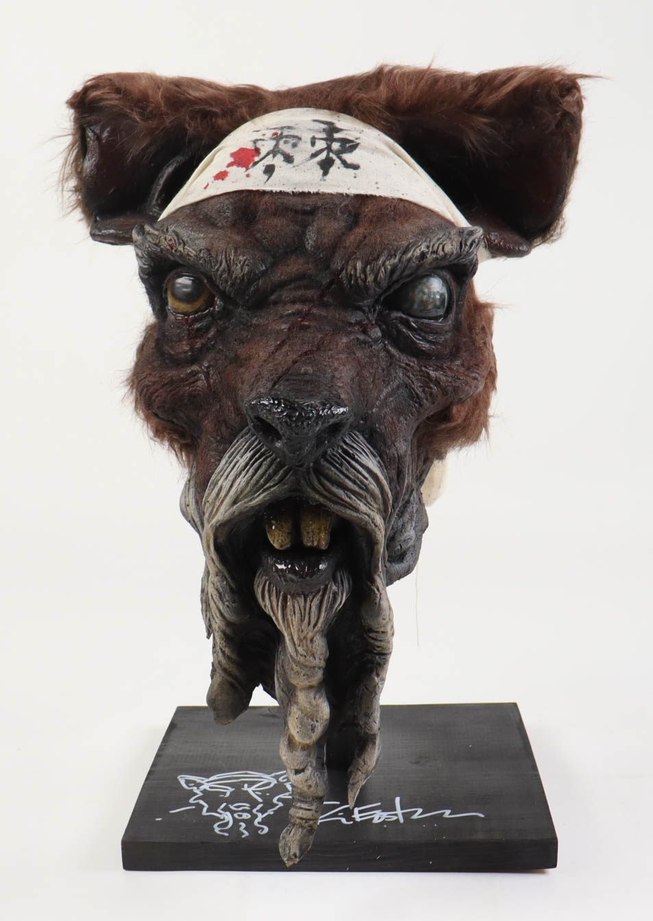 This original one-of-a-kind foam-filled latex sculpture was created by the extremely talented artist, Tate Steinsiek of Ill Willed Productions. Sculpture measures approximately 15" x 16" x 21" in size. The base of the custom stand is hand-signed along with a Splinter sketch by Kevin Eastman (co-creator of The Teenage Mutant Ninja Turtles).