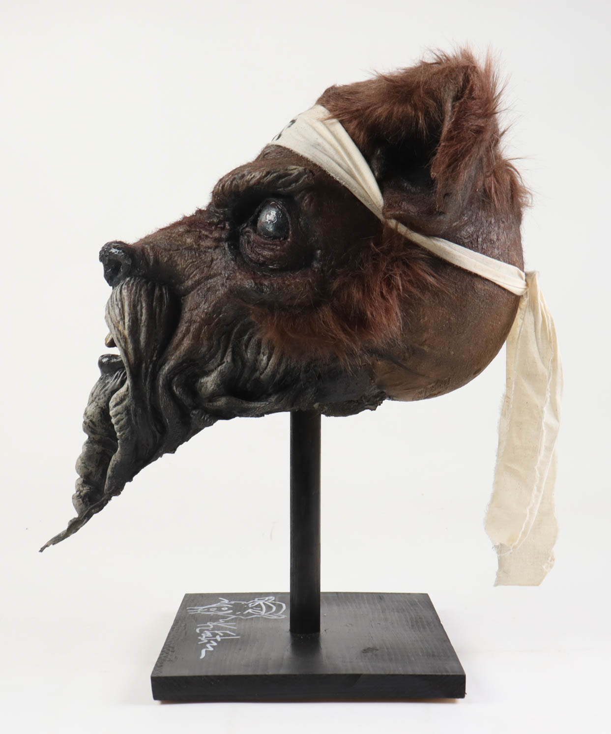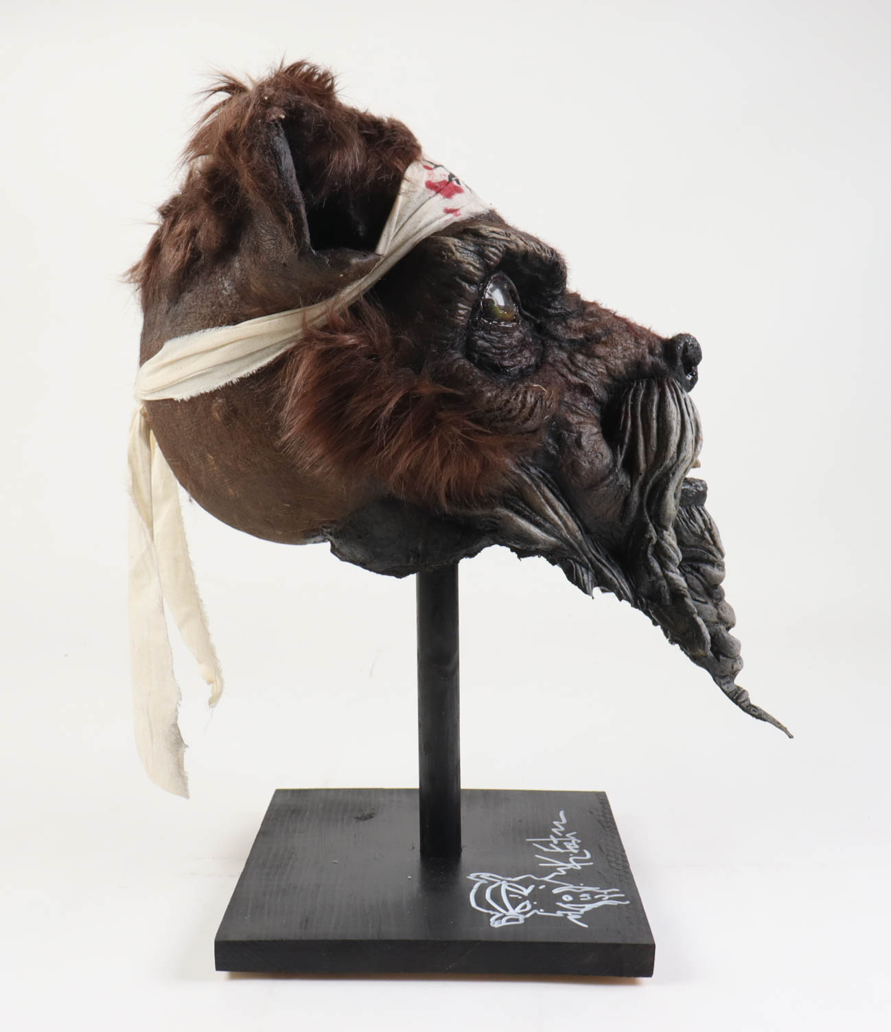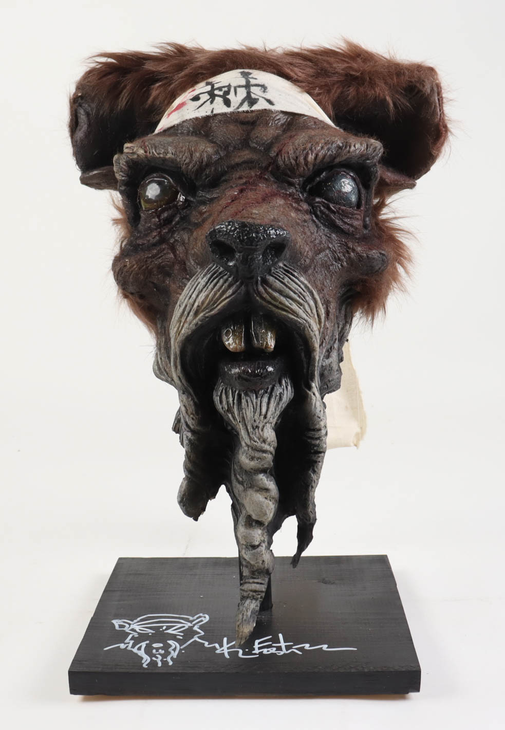 This original one-of-a-kind foam-filled latex sculpture was created by the extremely talented artist, Tate Steinsiek of Ill Willed Productions. Sculpture measures approximately 15" x 16" x 21" in size. The base of the custom stand is hand-signed along with a Splinter sketch by Kevin Eastman (co-creator of The Teenage Mutant Ninja Turtles).