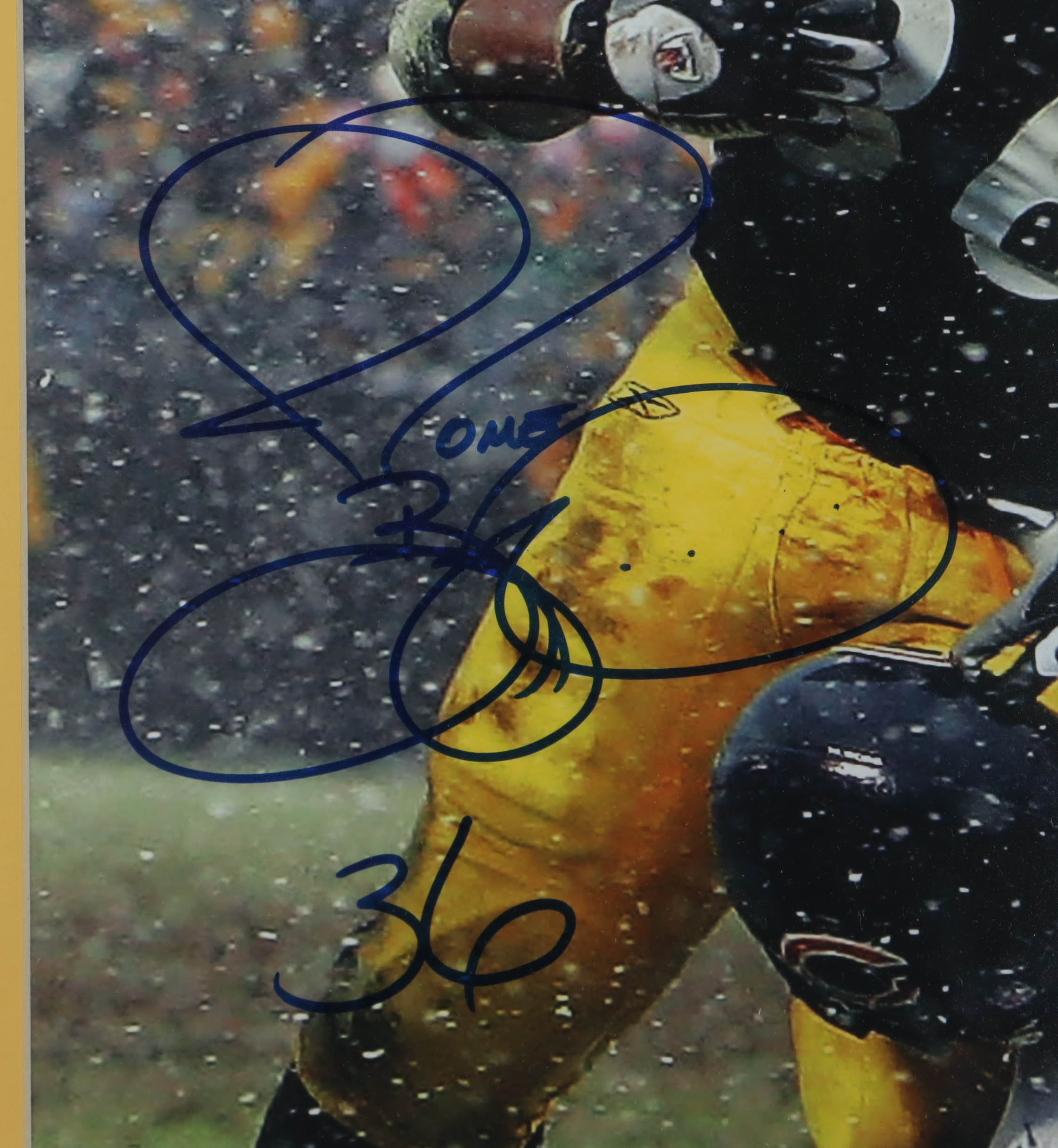 Custom frame measures 22" x 30" in size. Features a photo that has been hand-signed by Jerome Bettis (Pittsburgh Steelers, HOF).