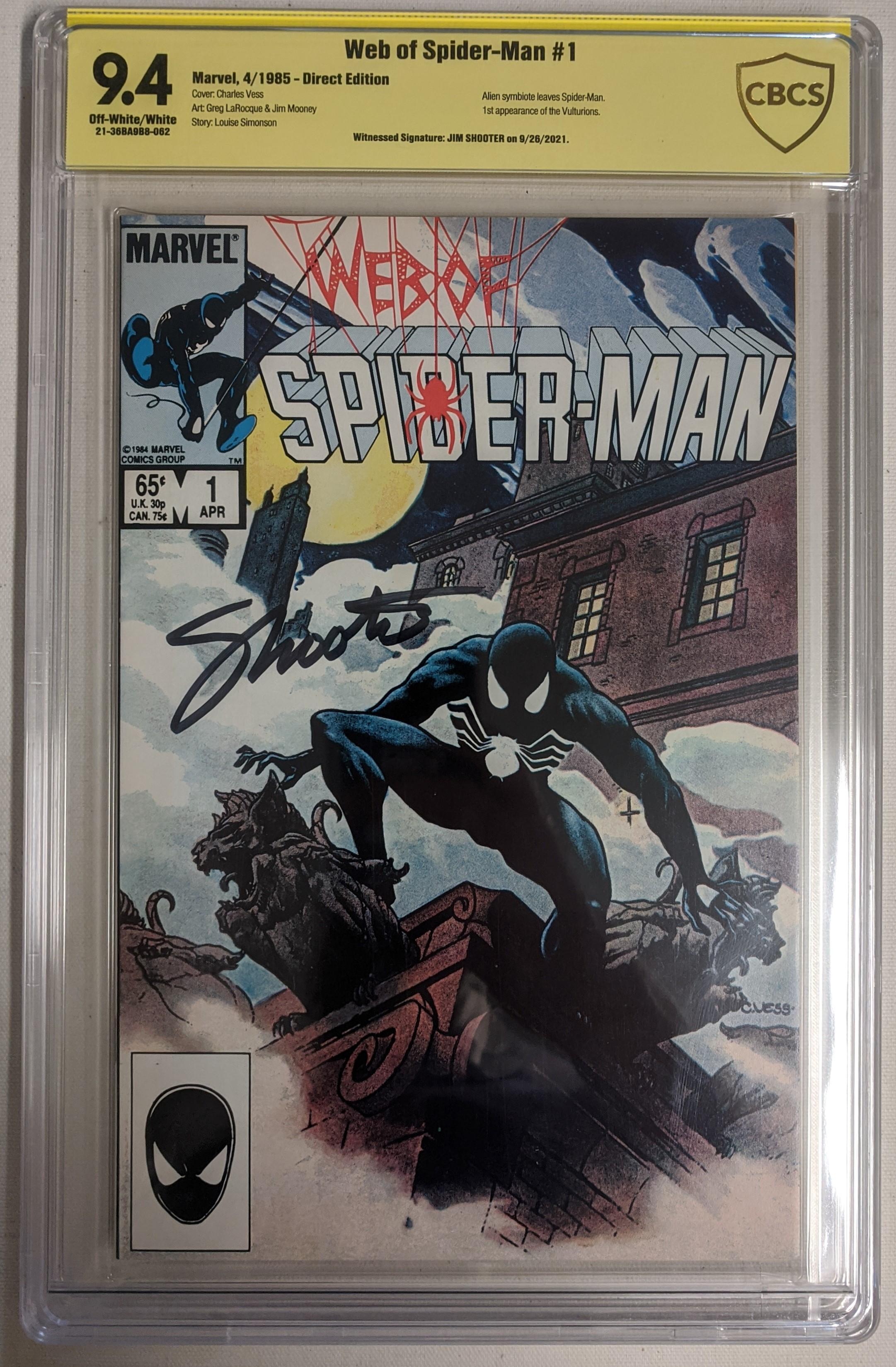 Jim Shooter Signed 1985 "Web of Spider-Man" Issue #1 Marvel Comic Book (CBCS 9.4)