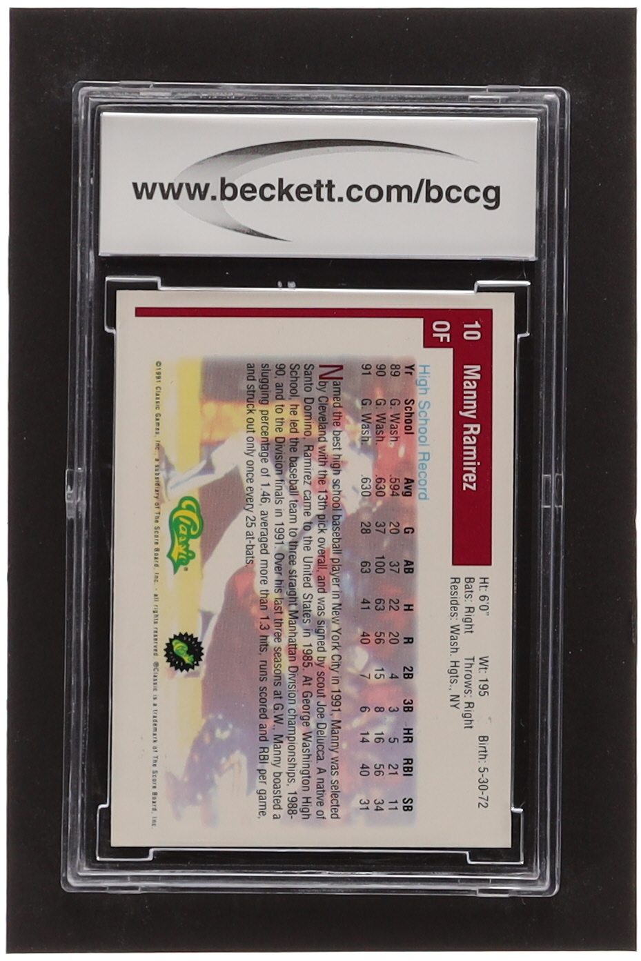 Manny Ramirez 1991 Classic Draft Picks #10 RC (BCCG 10)
