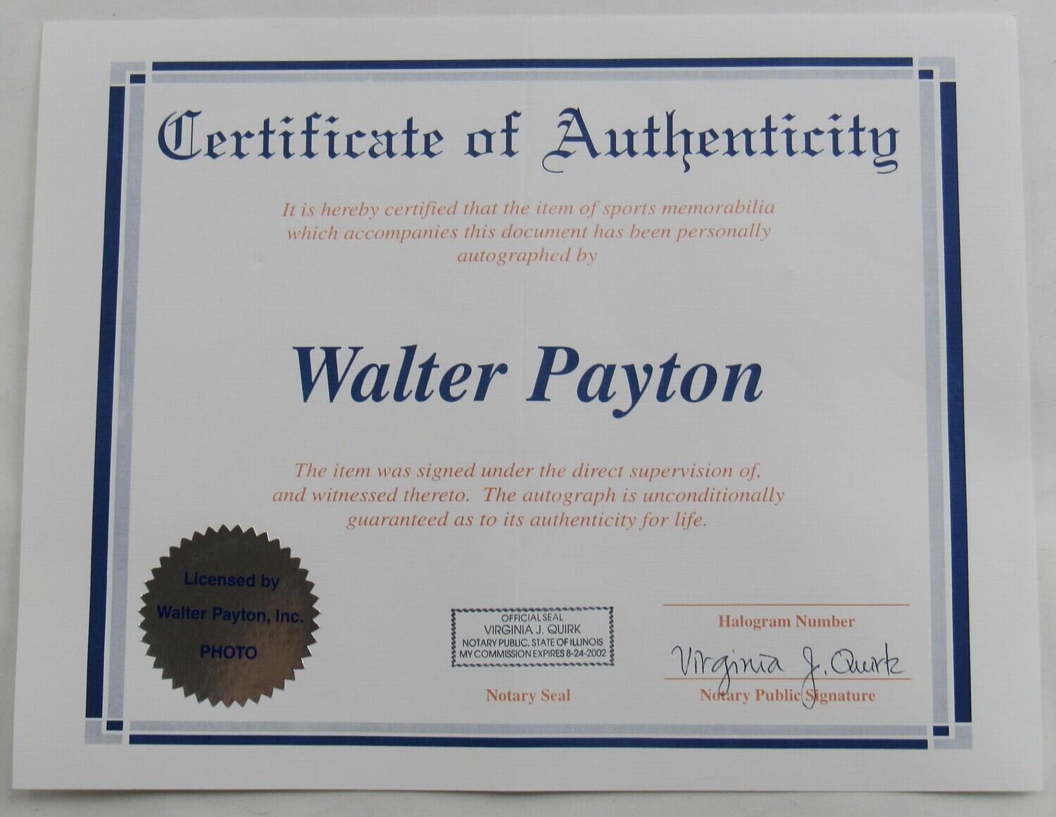 The lot / autograph(s) includes an official Walter Payton player hologram and matching COA for authenticity purposes.