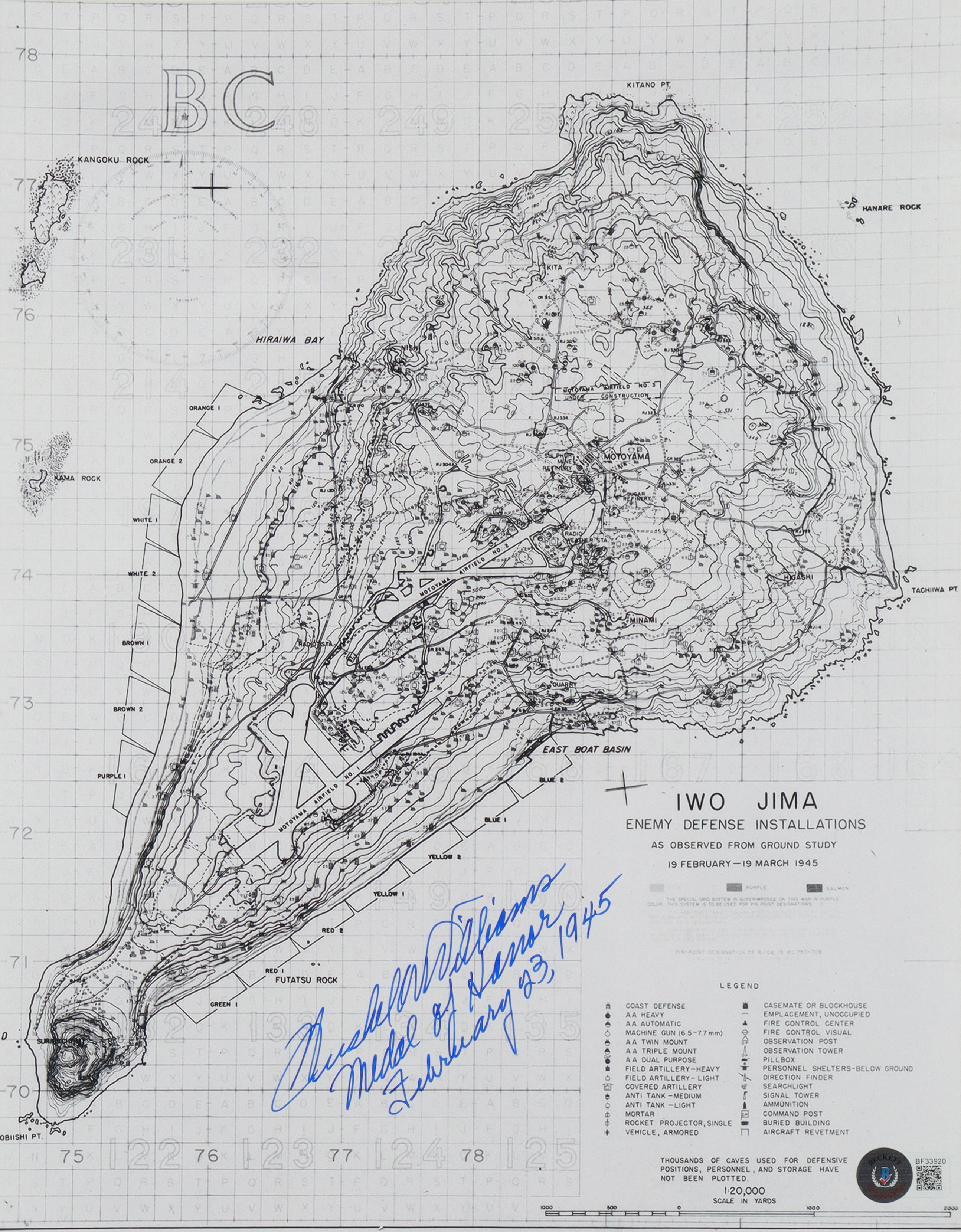 Hershel Williams Signed Iwo Jima Defense Map 11x14 Photo Inscribed "Medal Of Honor" & "February 23, 1945" (Beckett)