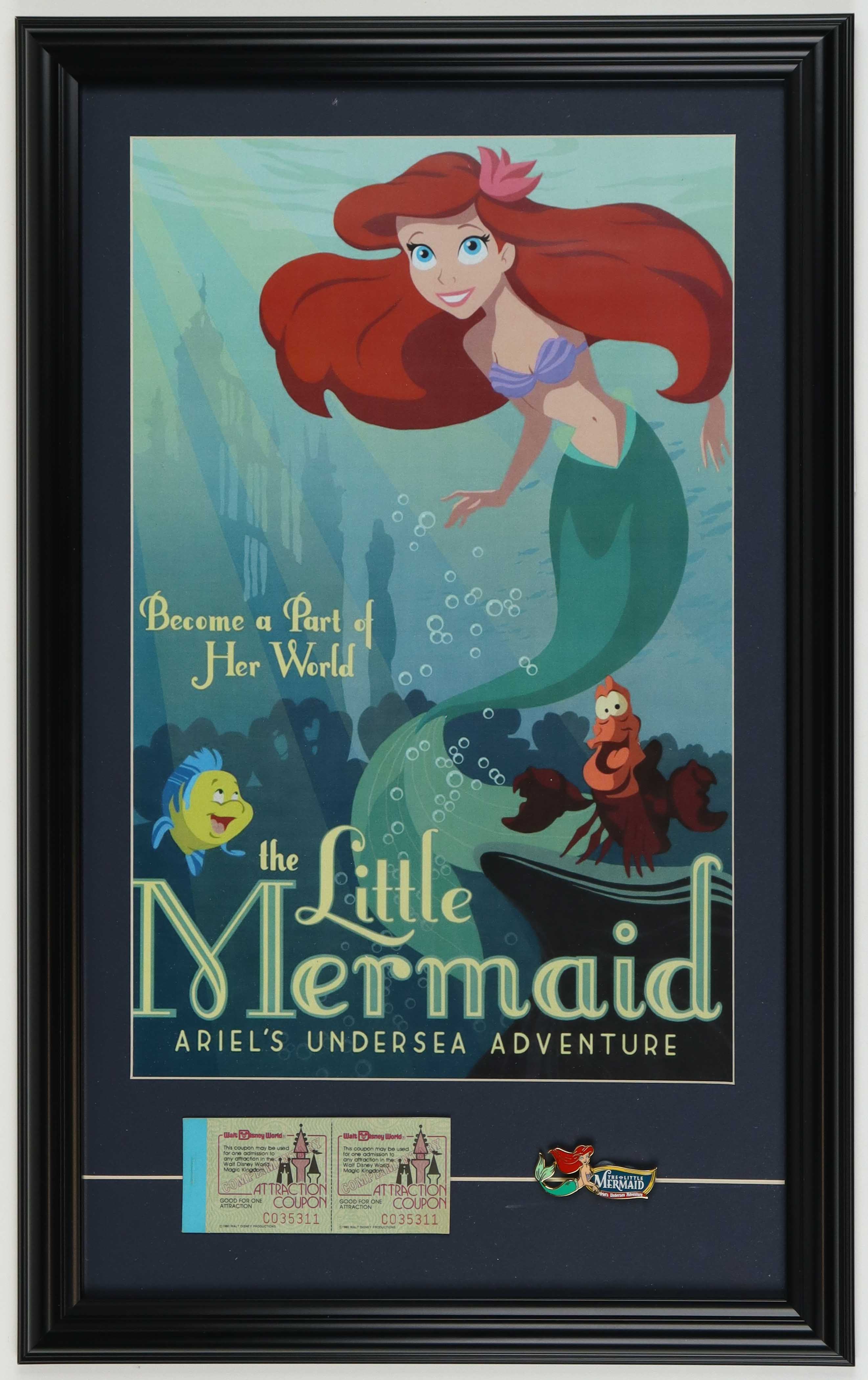 Walt Disney World "The Little Mermaid: Ariels Undersea Adventure" Custom Framed Print Display with Ticket Book & Official Ride Pin
