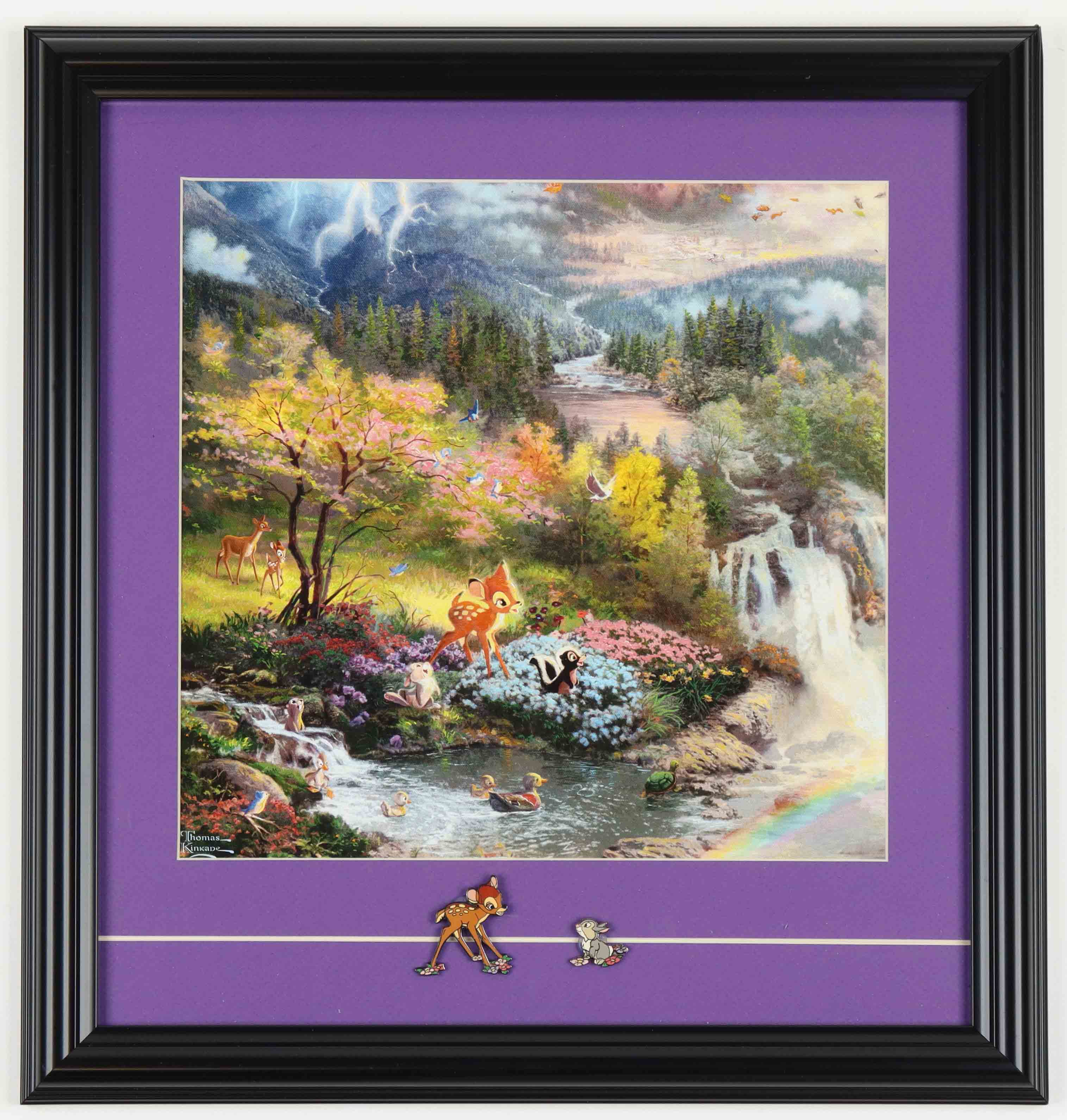 Thomas Kinkade "Bambi" Custom Framed Print Display with Bambi & Thumper Pins
