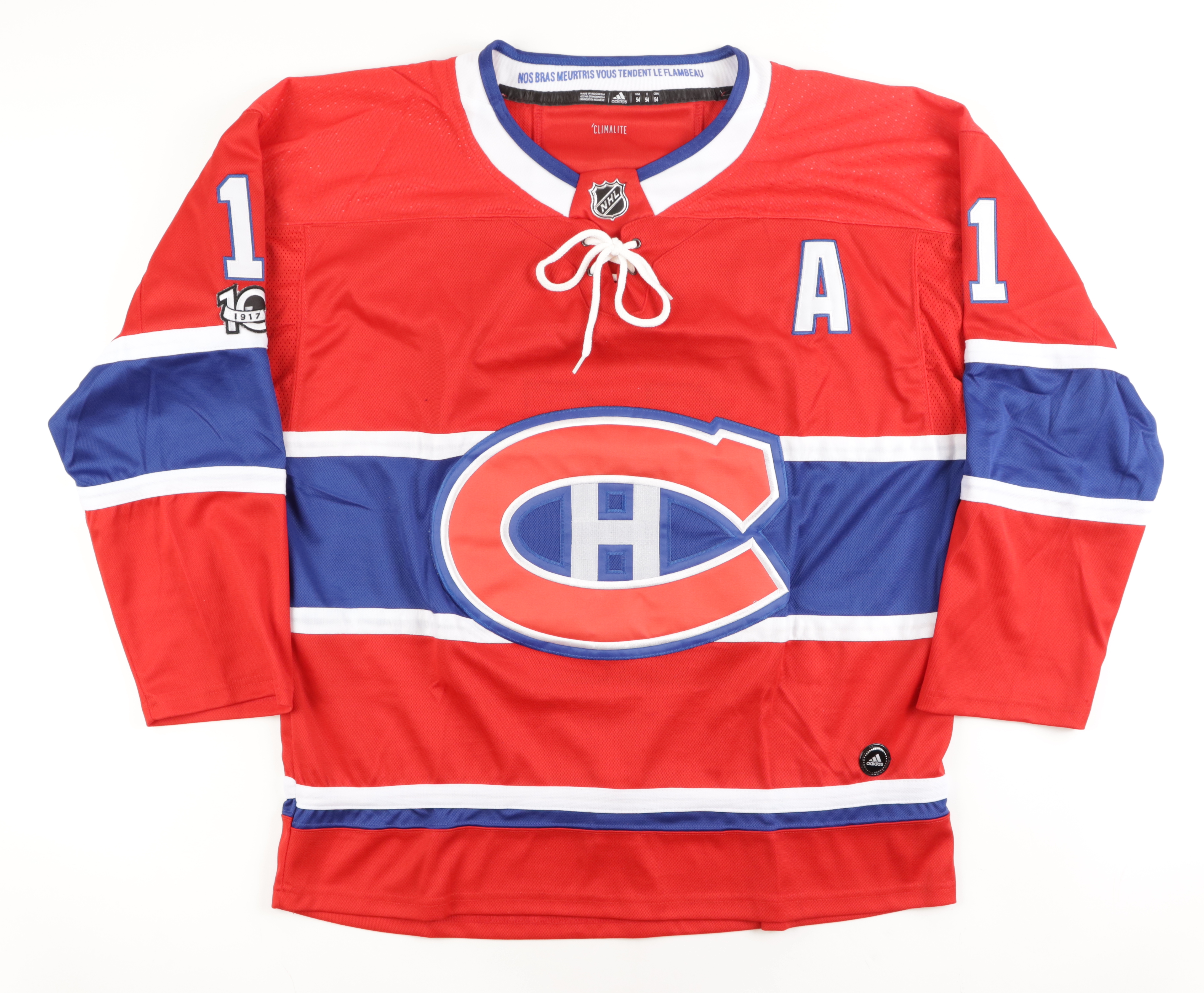 On-ice style jersey. Everything is sewn on, size 54. Hand-signed by Brendan Gallagher.