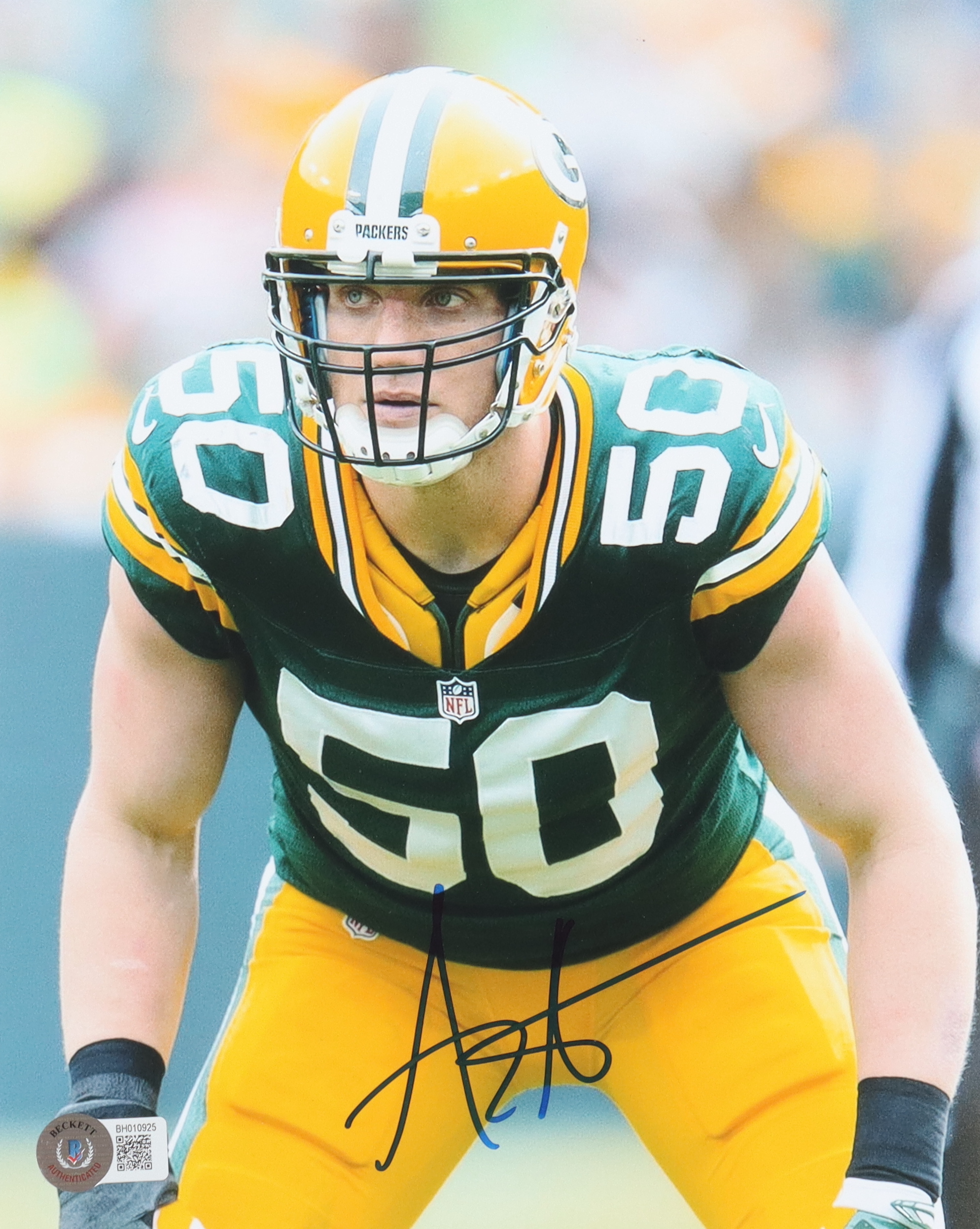 Photo measures 8" x 10" in size. Hand-signed by A. J. Hawk (Green Bay Packers).