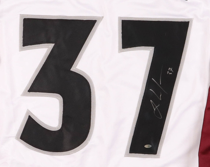 Custom on-ice style jersey. Everything is sewn on, size XL. Hand-signed by J.T. Compher.