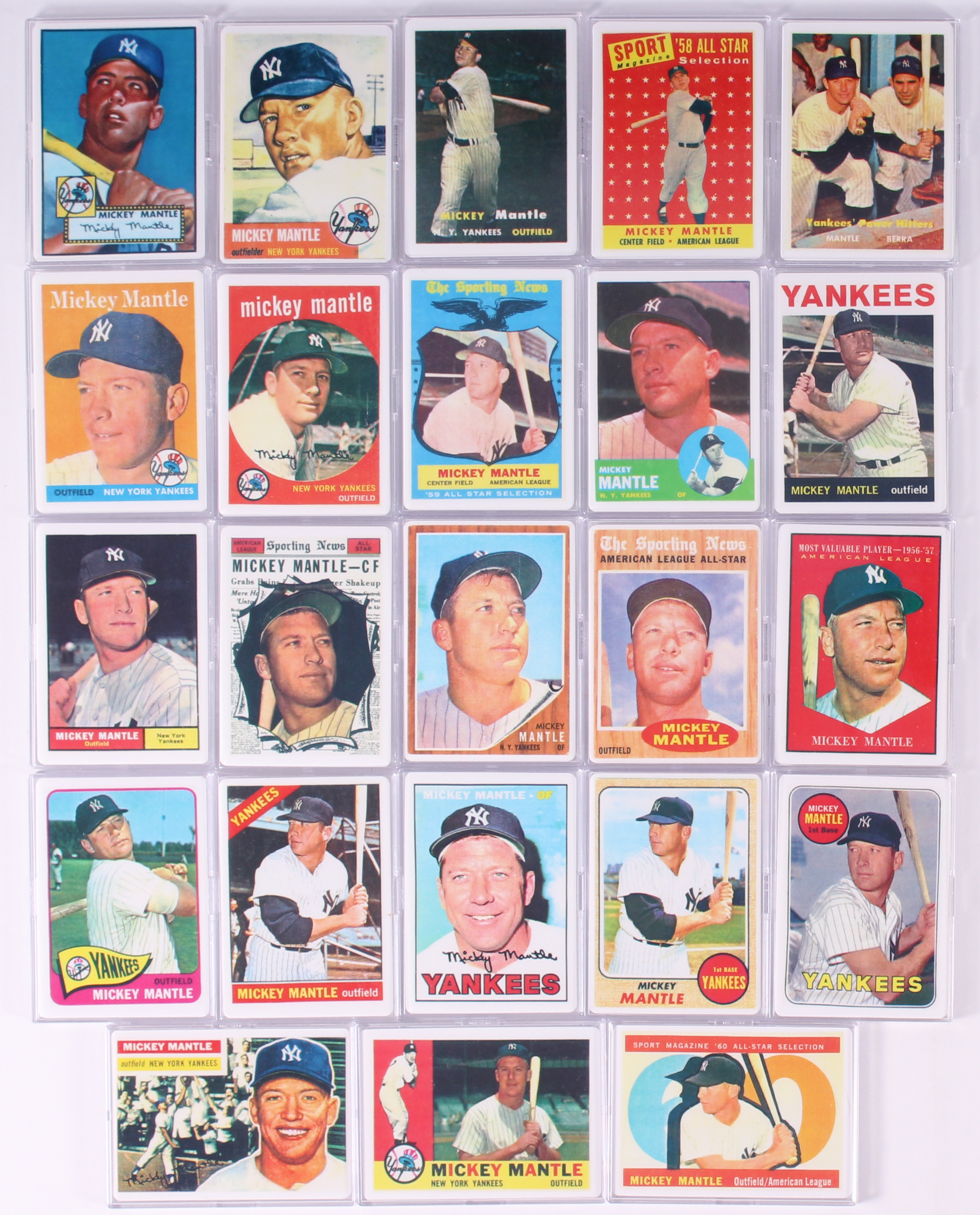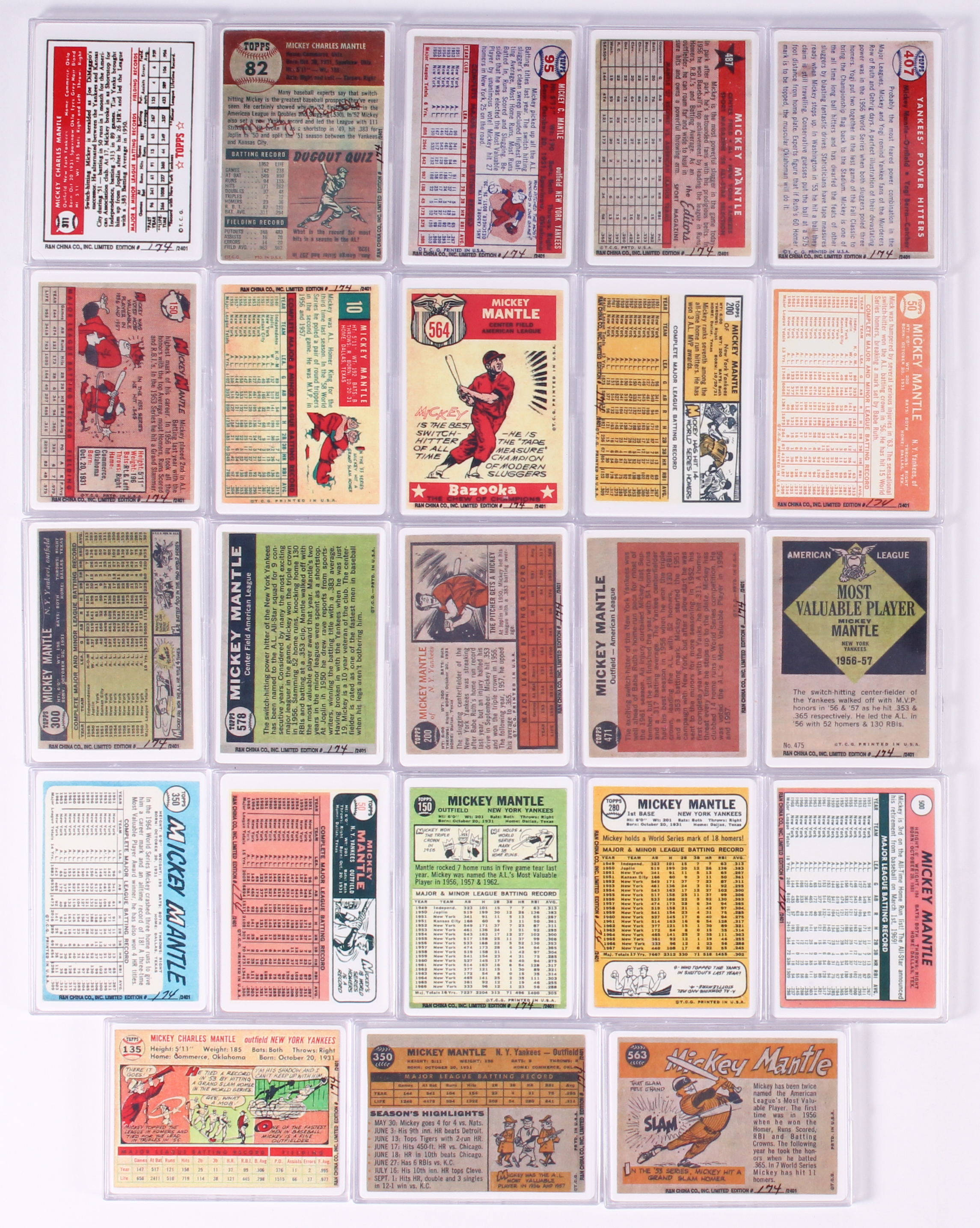 Complete Set of (23) Mickey Mantle LE Replica Porcelain Baseball Cards with Display Case