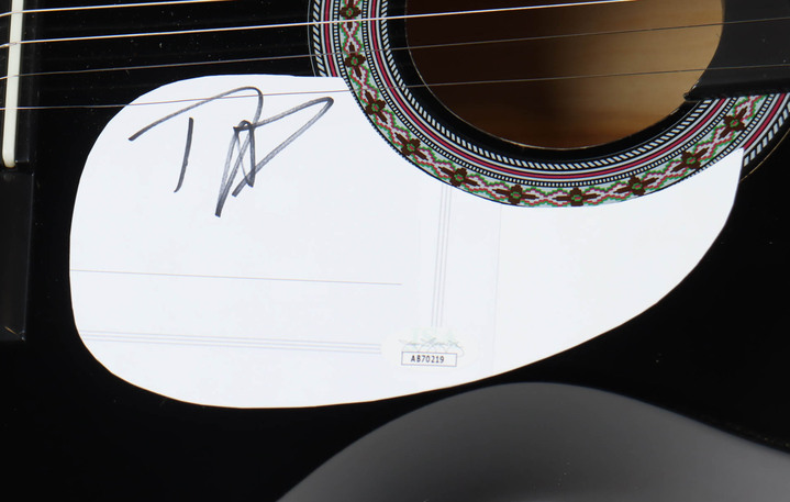 Acoustic Guitar measures approximately 38" in length. Hand-signed by David Grohl on the pick-guard. This guitar is a display guitar. It is a lower-tier version and is not the same quality as one that a musician would play.