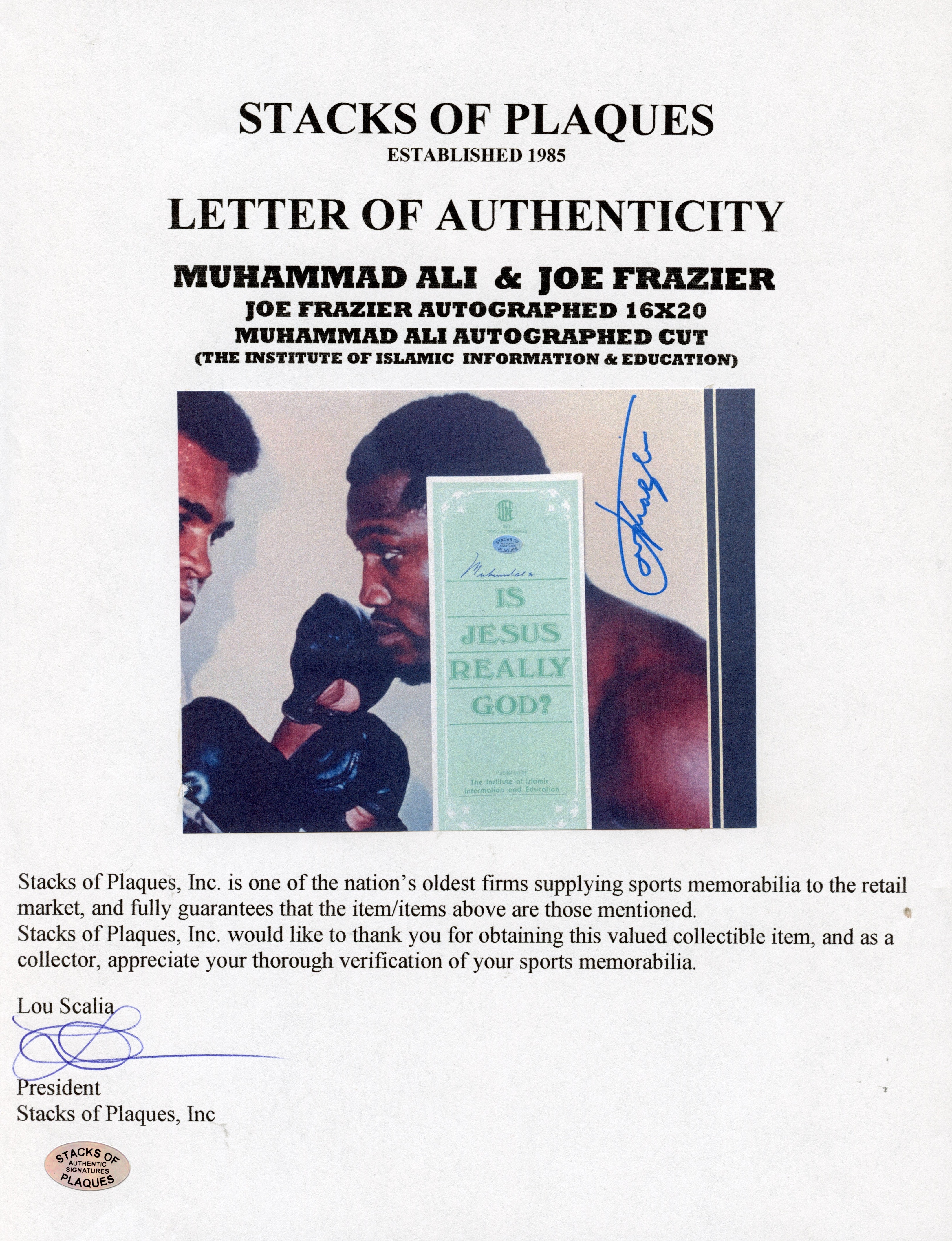 Muhammad Ali & Joe Frazier Signed 20x24 Custom Matted Photo & Cut Display (Stacks of Plaques)