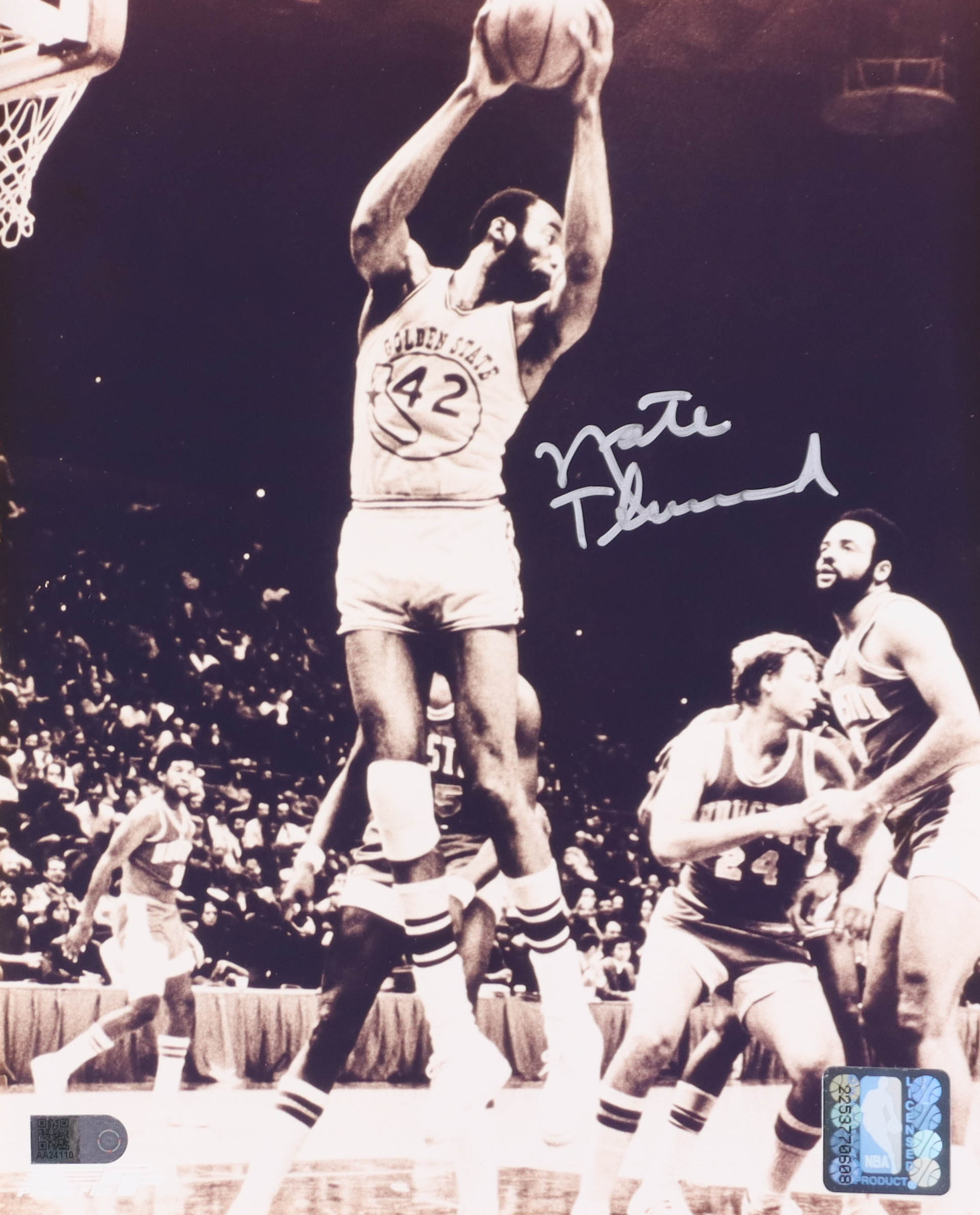 Photo measures 8" x 10" in size and has been hand-signed by Nate Thurmond (D. 2016, Golden State Warriors, HOF).