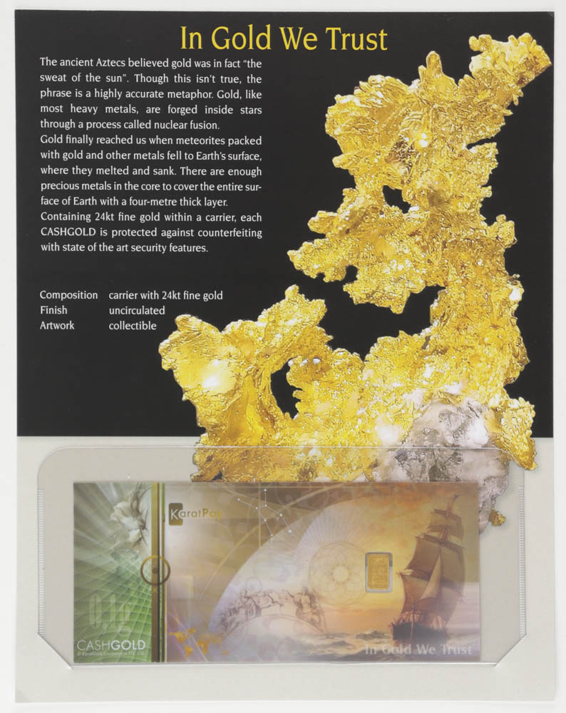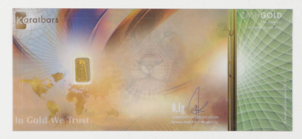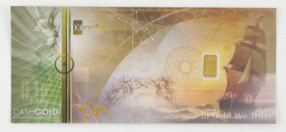 This collectible mini gold bar contains 0.10G of .999 fine gold. The piece is produced by KaratPay.