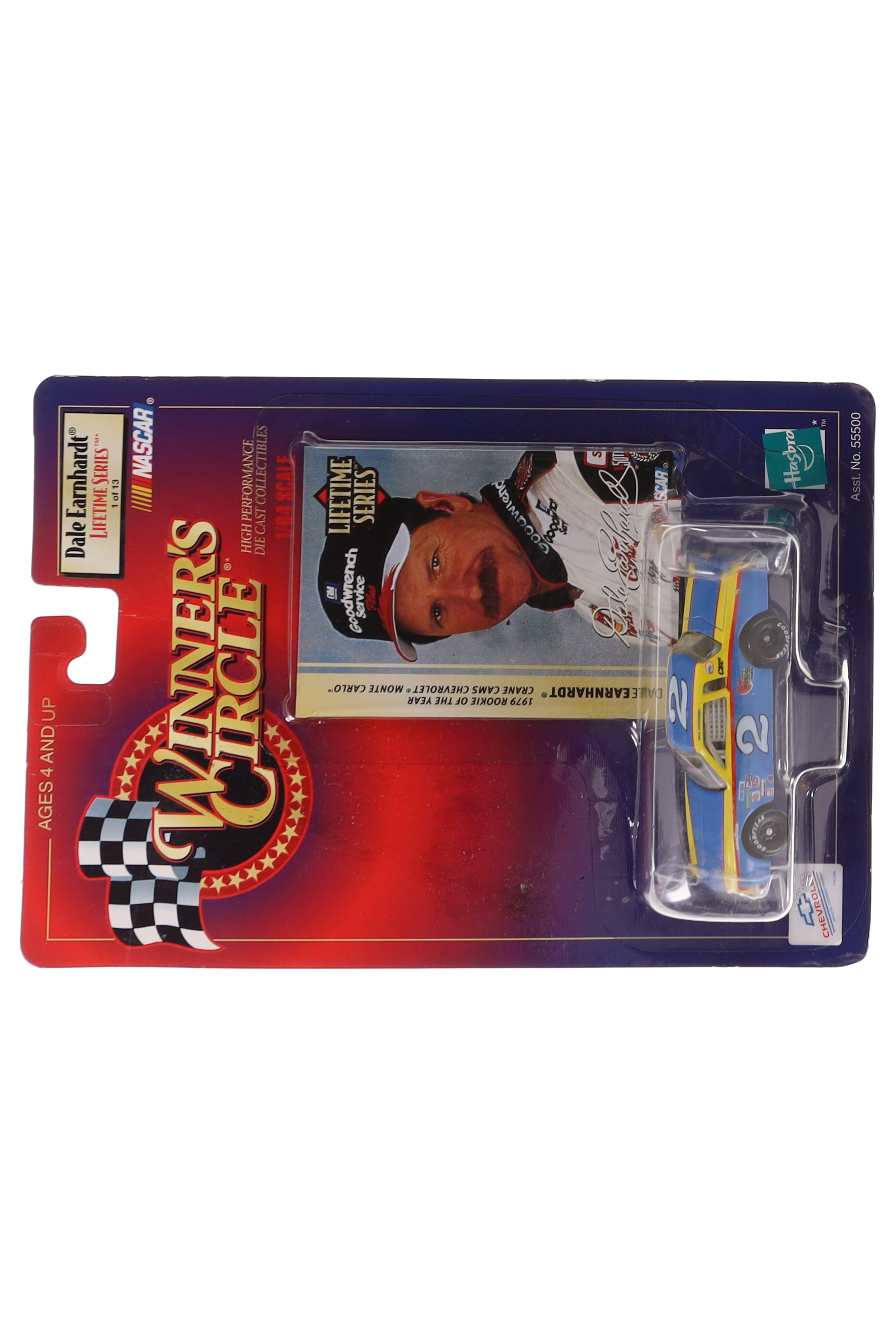 1998 Hasbro Winner's Circle Lifetime Series 1:64 scale diecast car with Dale Earnhardt trading card in original packaging.