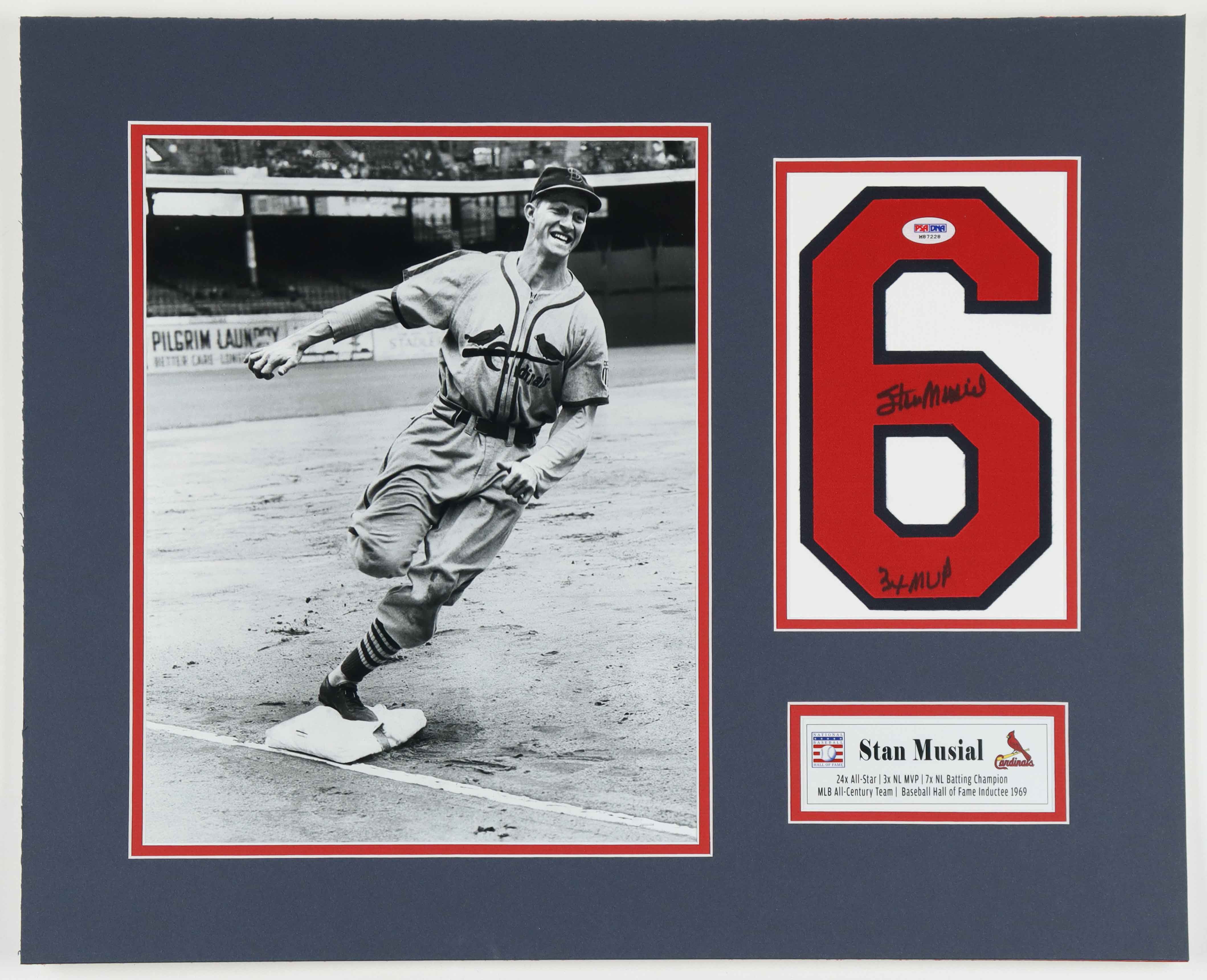 Stan Musial Signed Cardinals 18x22 Custom Matted #6 Jersey Number Display Inscribed "3x MVP" (PSA)