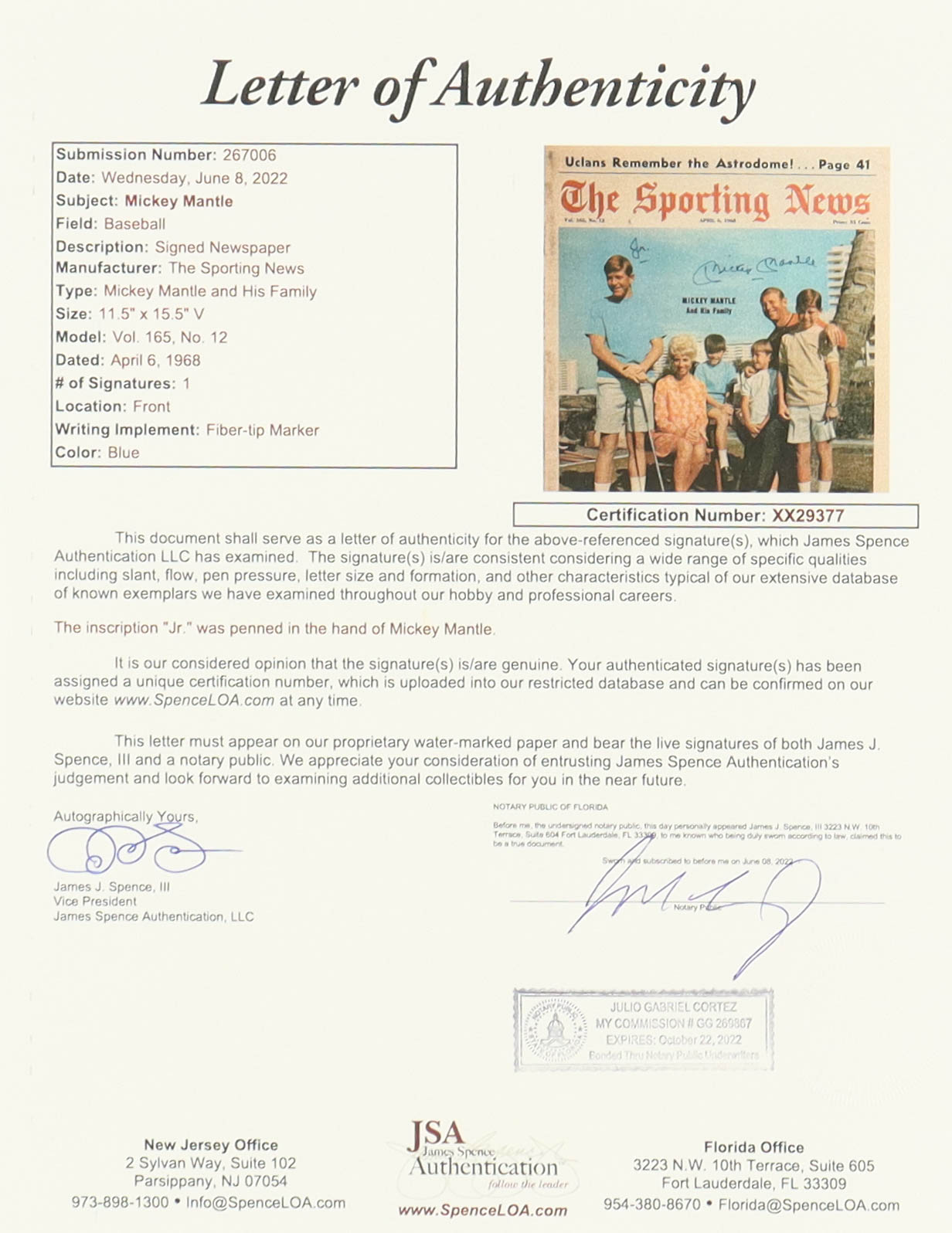 Mickey Mantle Signed 1968 "The Sporting News" Magazine Inscribed "Jr." (JSA)