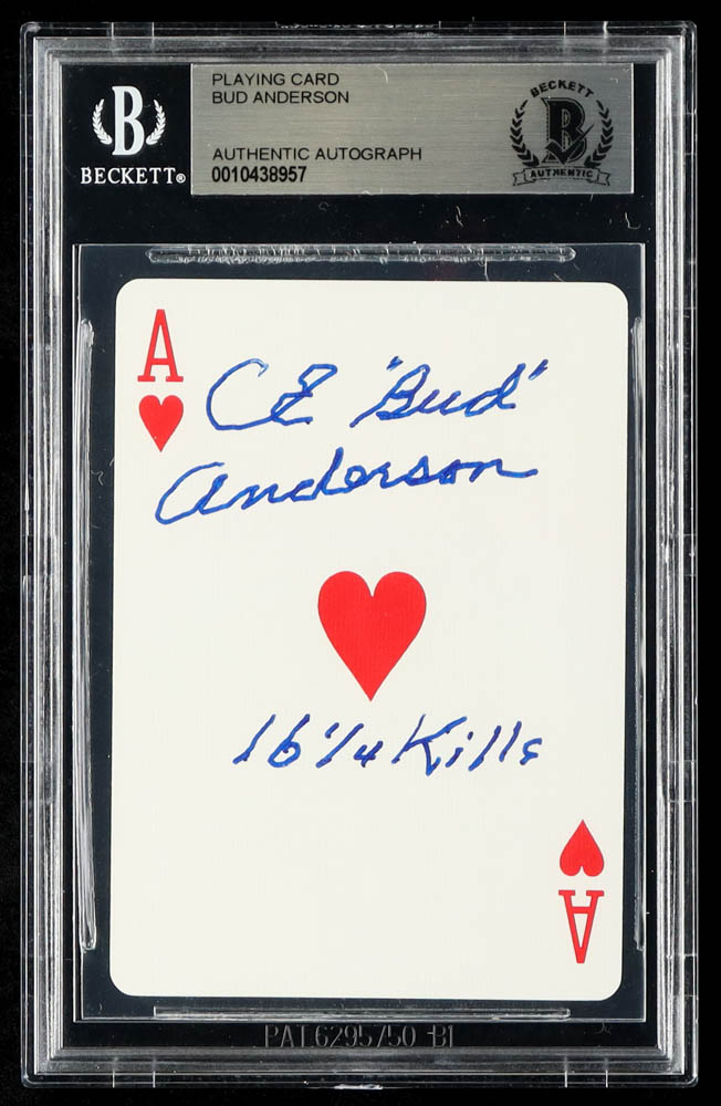 Clarence Emil "Bud" Anderson Signed Playing Card Inscribed "16 1/4 Kills" (Beckett)