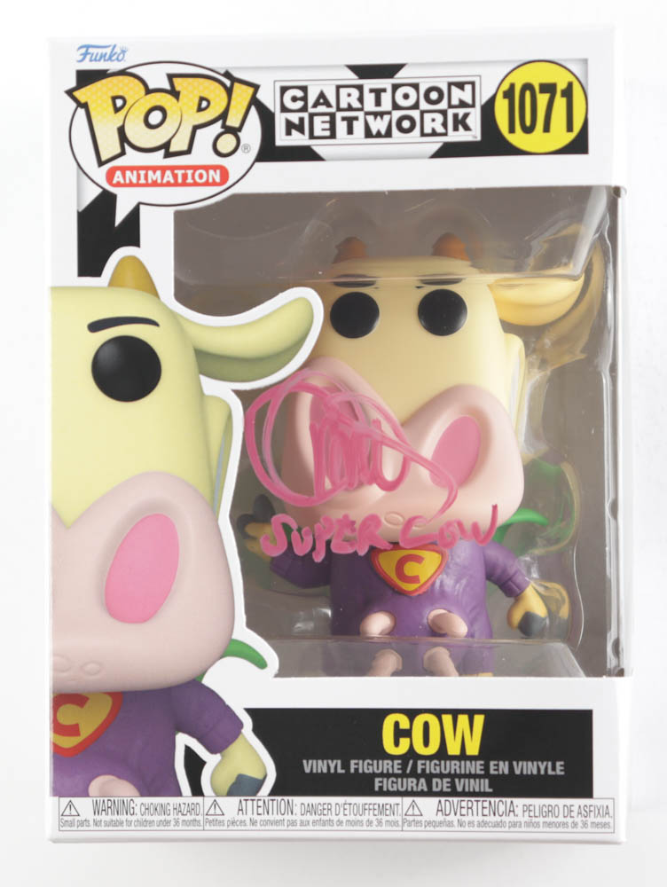 Charlie Adler Signed Pop! Animation "Cow And Chicken" #1071 Cow Funko Pop! Vinyl Figure Inscribed "Super Cow" (PSA)
