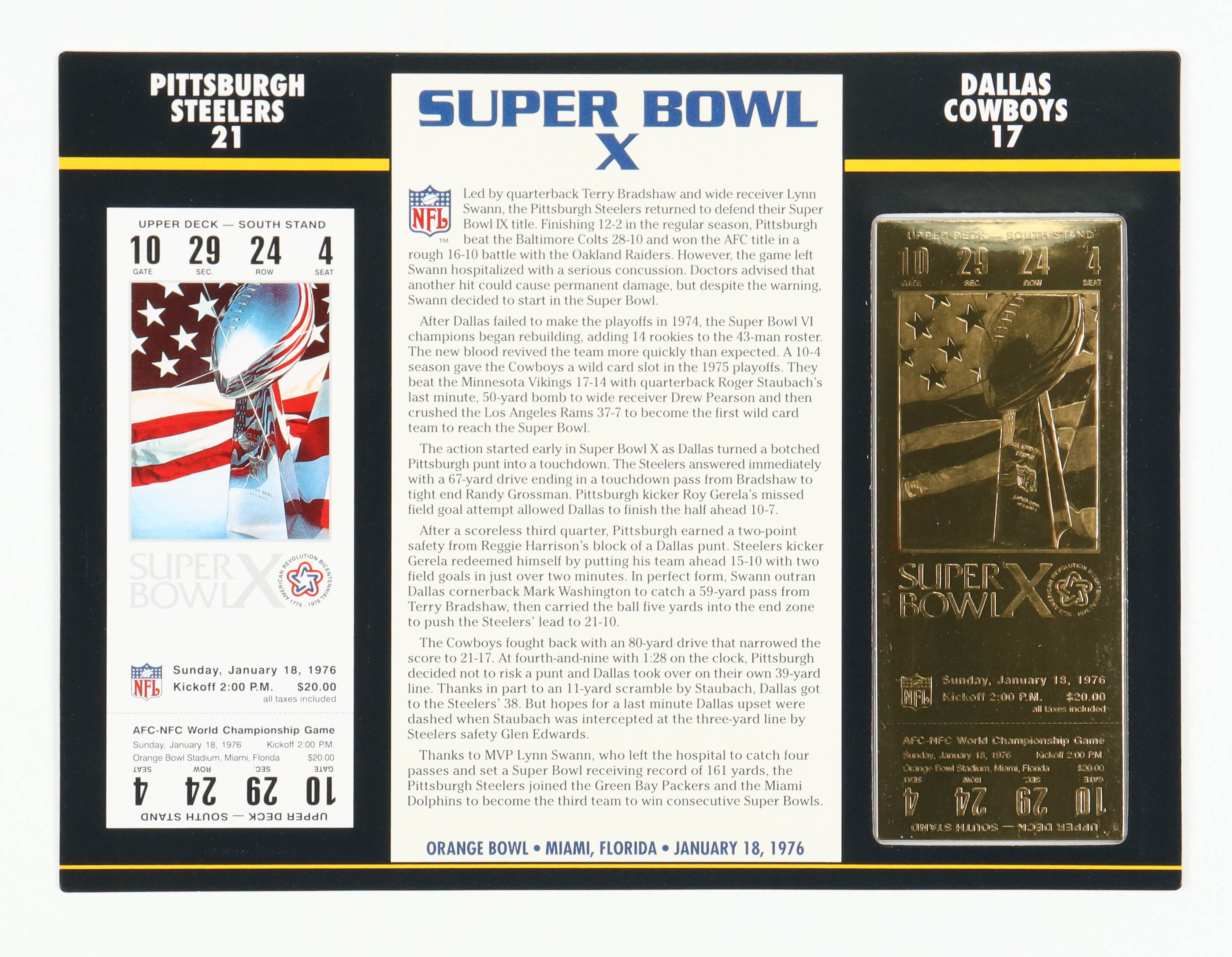 Display measures 9" x 12" in size and features a Super Bowl X 23kt gold ticket.