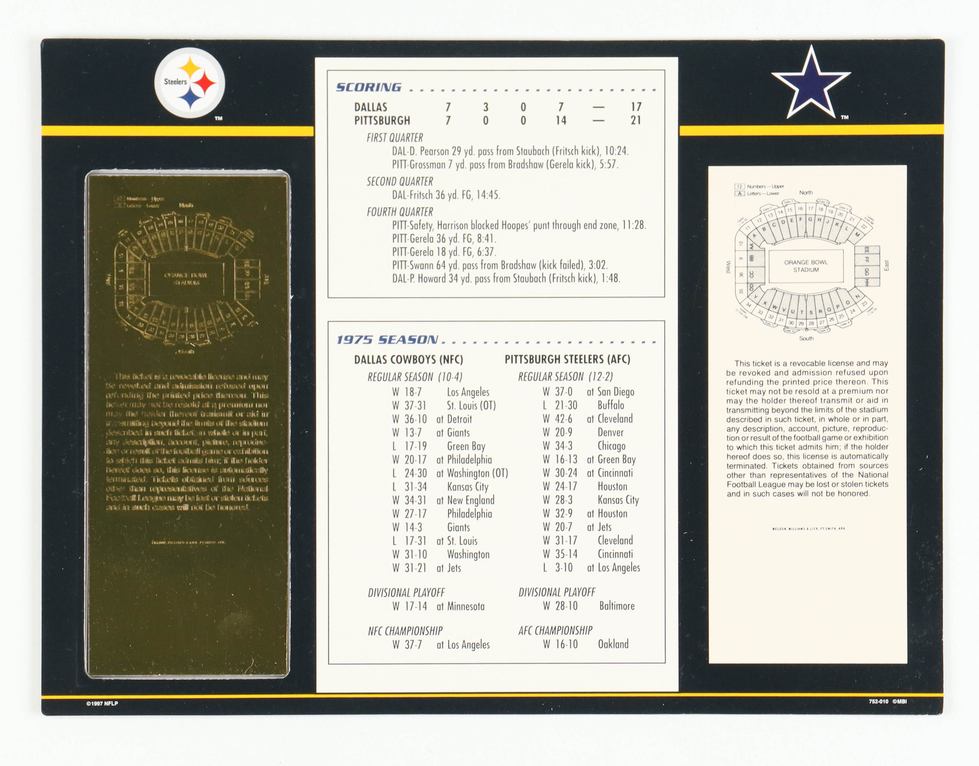 Super Bowl X Commemorative 9x12 Score Card Display with 23kt Gold Ticket
