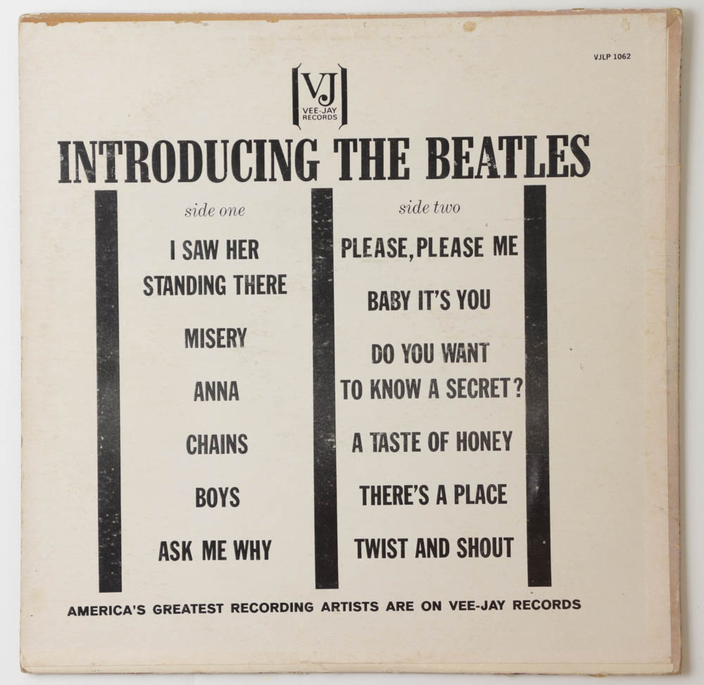The Beatles "Introducing The Beatles" vinyl record album. Please note, the vinyl record is included. Please note, album shows wear.