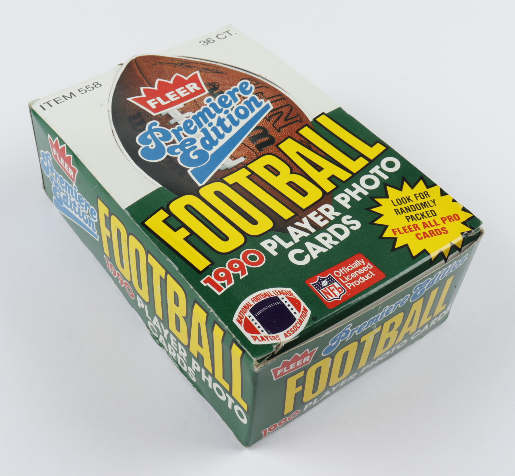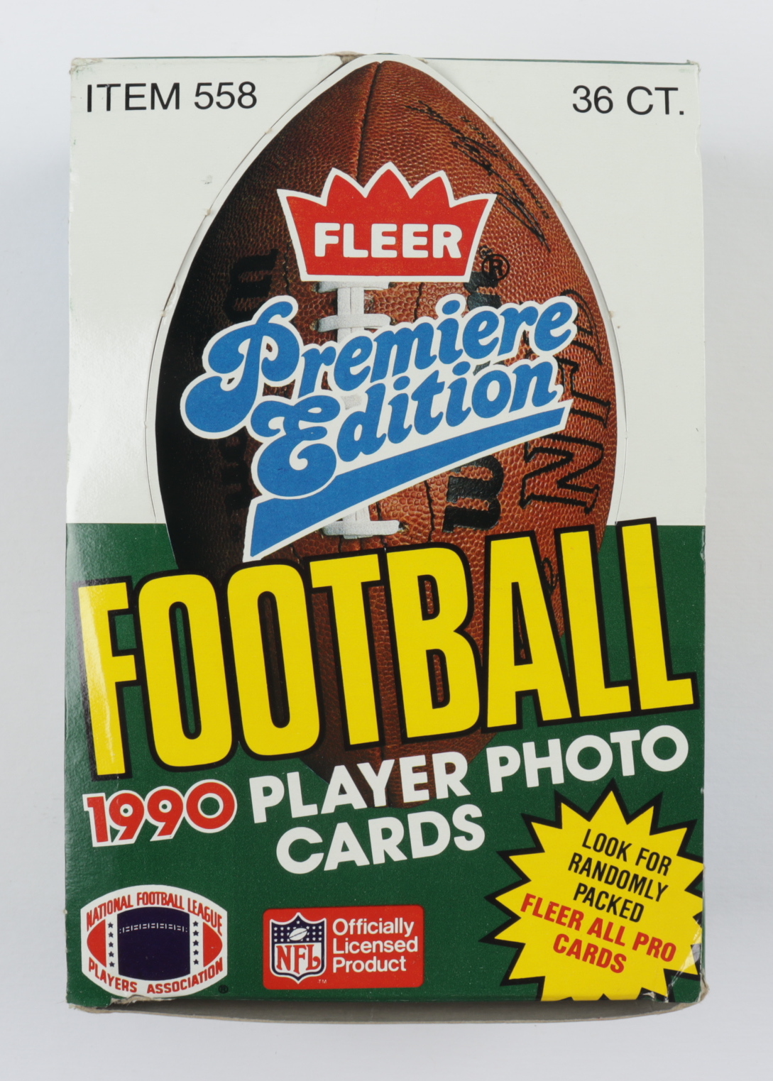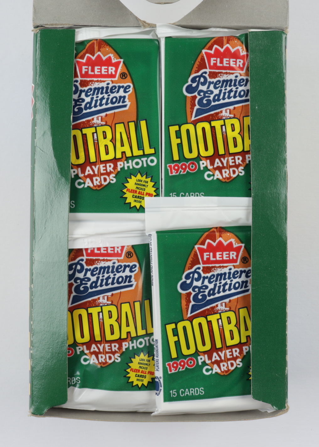 Box of (36) 1990 Fleer Premiere Edition Football wax packs. Each pack includes 15 cards.