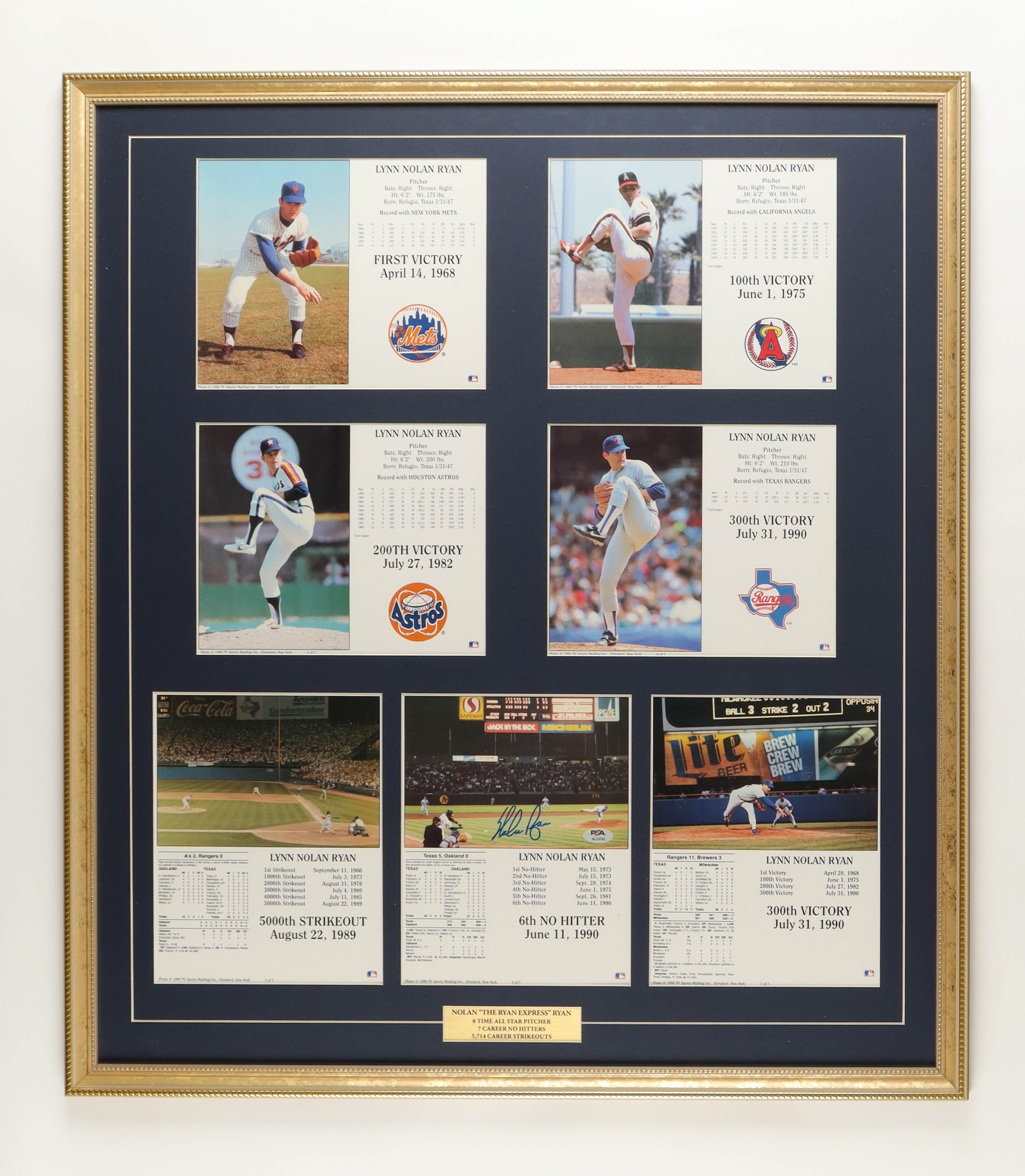 Nolan Ryan Signed Custom Framed Set of (7) Hall of Fame Induction Cards (PSA)