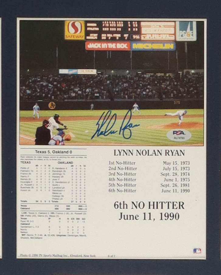 Custom frame measures approximately 30" x 34" in size and features a photo that has been hand-signed by Nolan Ryan (New York Mets / California Angels / Houston Astros / Texas Rangers, HOF).