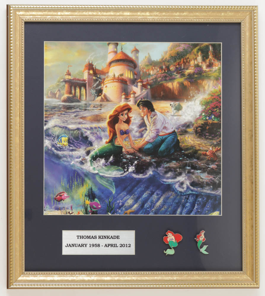 Thomas Kinkade "The Little Mermaid" Custom Framed Print Display With Princess Ariel Pin