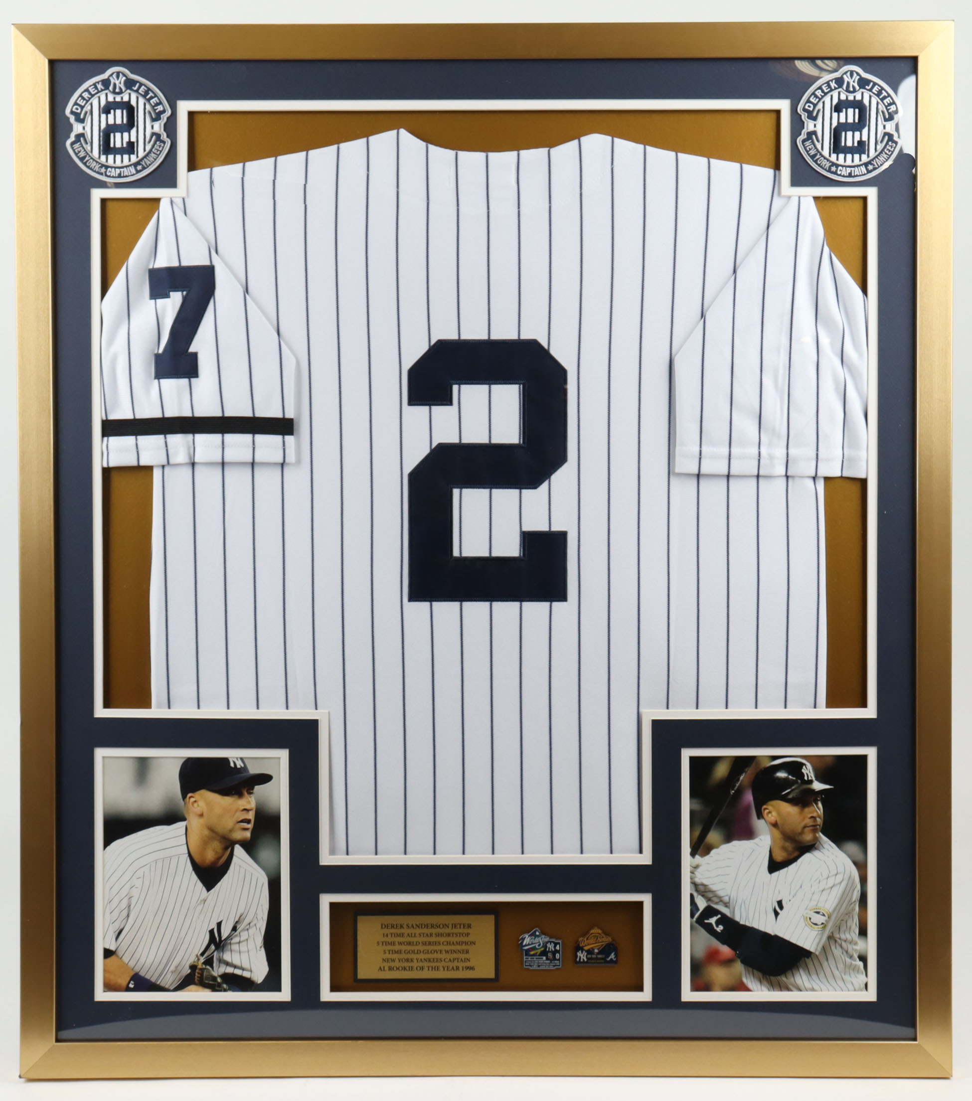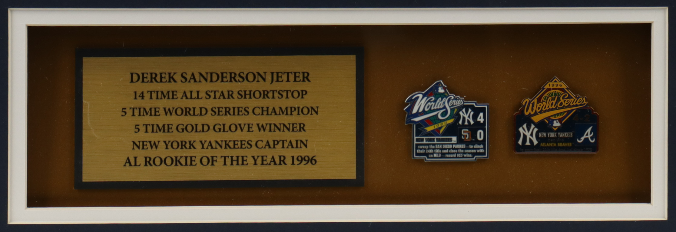 Derek Jeter Custom Framed Jersey Display with 1996 & 1999 Official World Series Pins