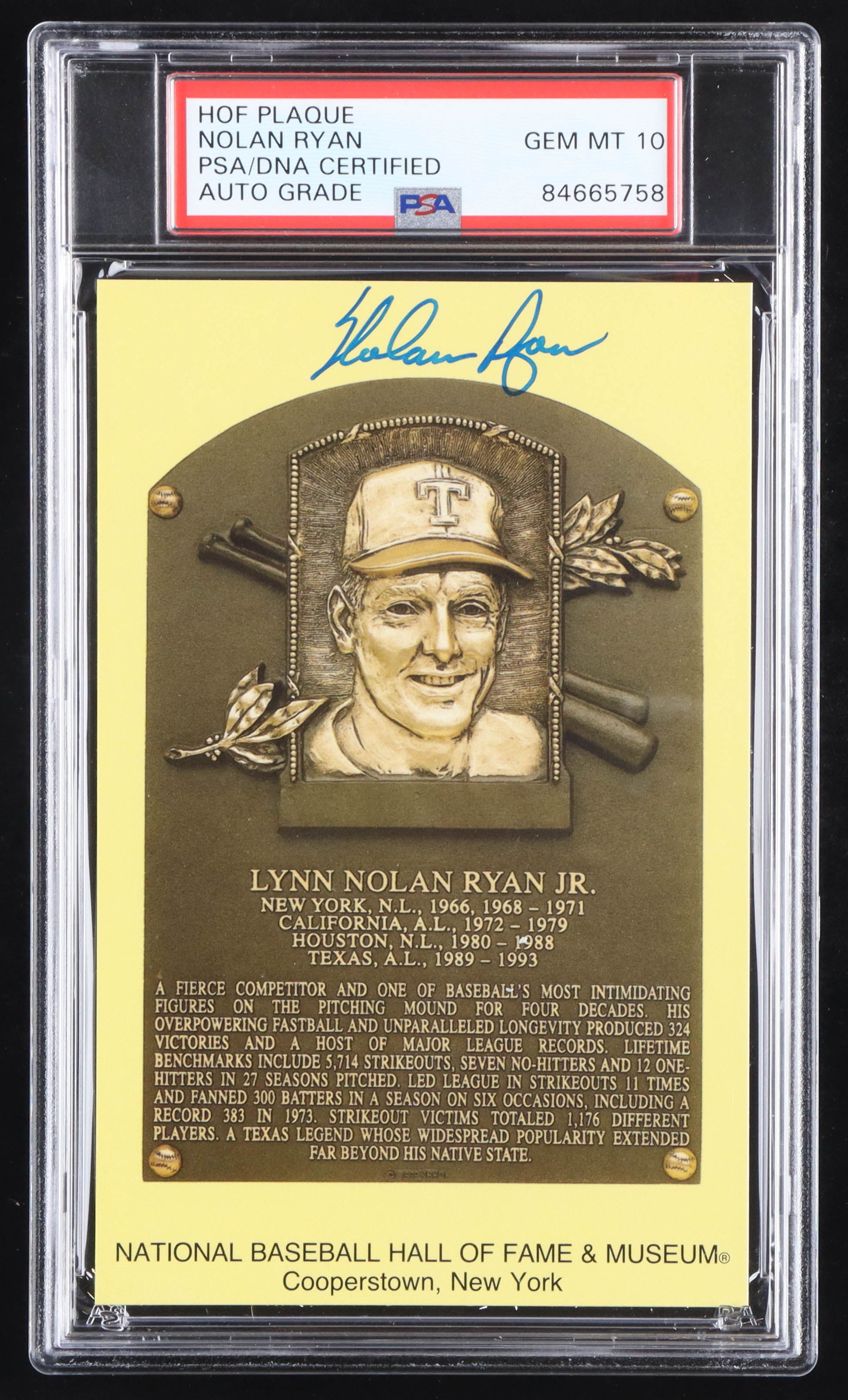 Nolan Ryan Signed Hall of Fame Plaque Postcard (PSA)