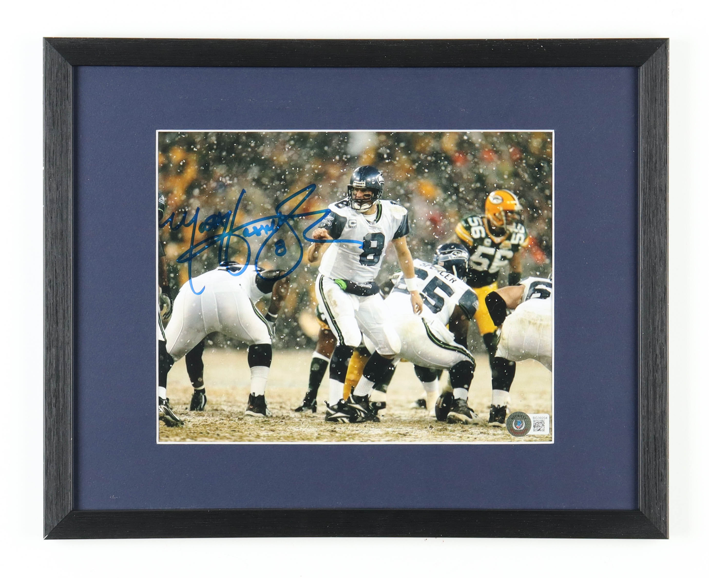 Custom frame measures 12" x 15" in size and features a photo that has been hand-signed by Matt Hasselbeck (Seattle Seahawks).