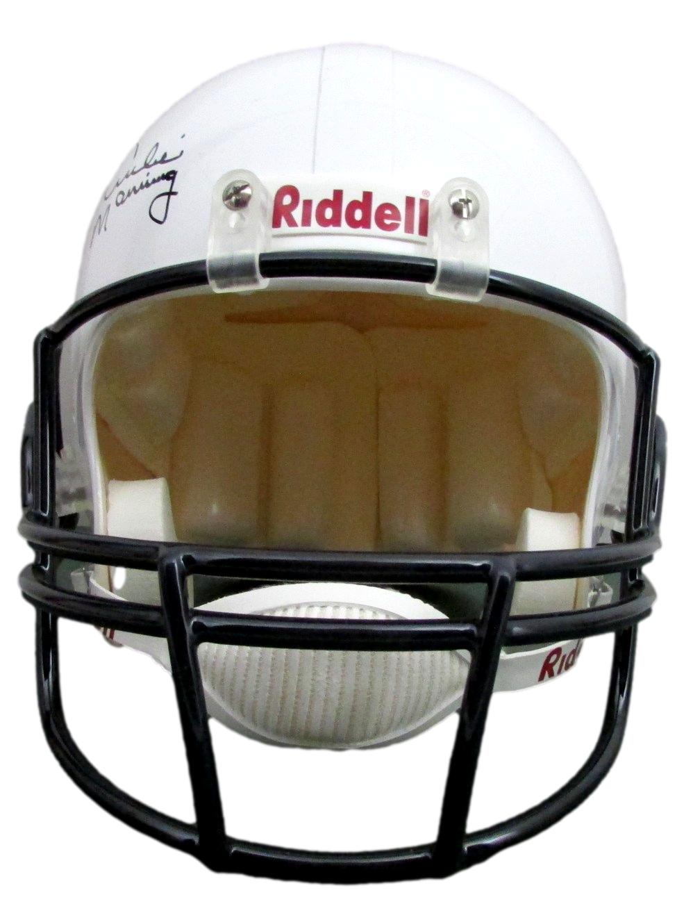 Riddell NFL Shield logo full-size replica helmet. Hand-signed by Peyton Manning (Indianapolis Colts, HOF), Eli Manning (New York Giants) and Archie Manning (New Orleans Saints).