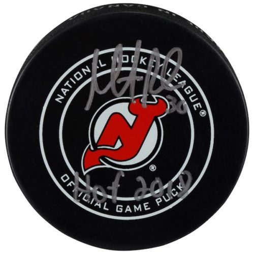 Martin Brodeur Signed Devils Logo Hockey Puck Inscribed "2018 HOF" (Fanatics)