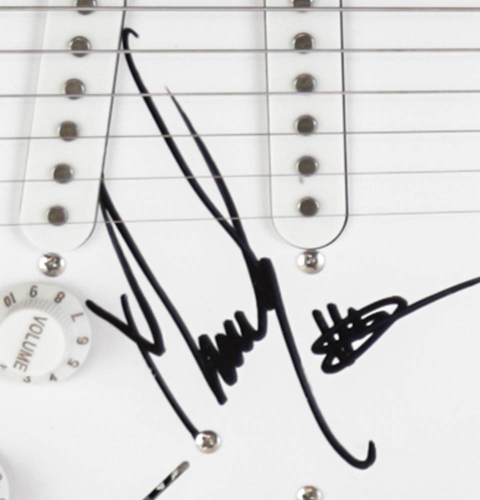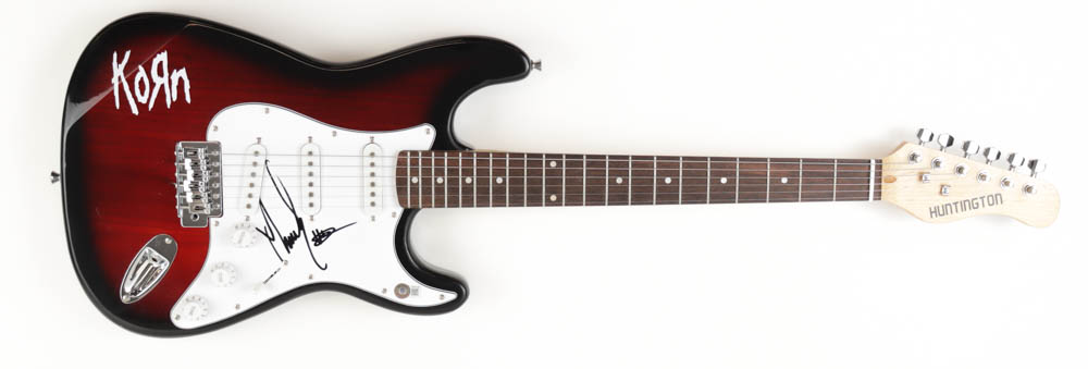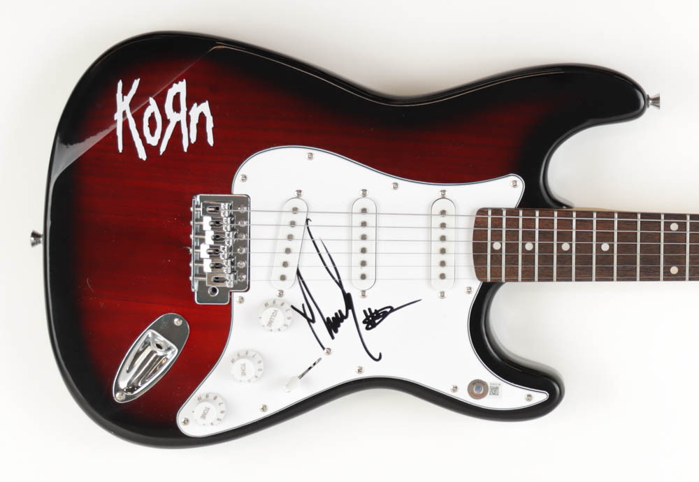 Electric guitar measures approximately 39" in length and has been hand-signed on the pickguard by James "Munky" Shaffer.